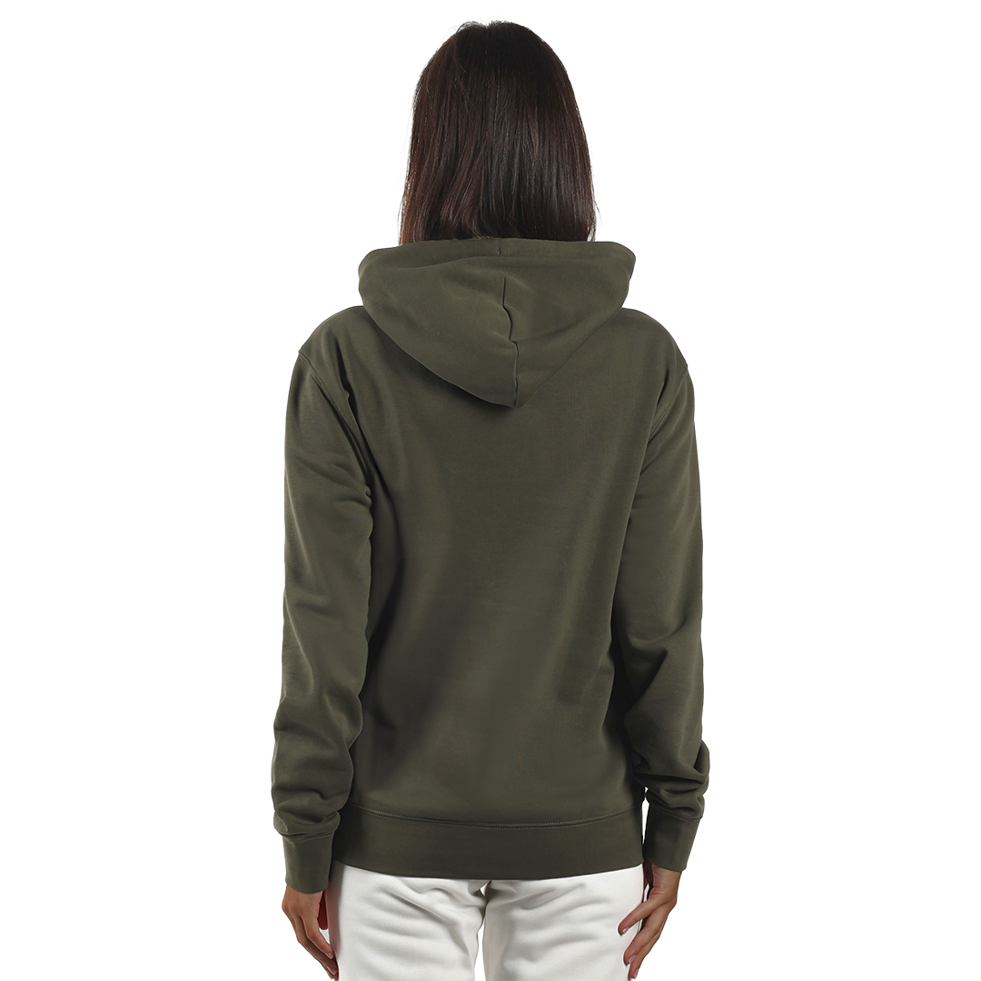 Dukserica od organskog pamuka, ima prednji džep, učkur u kapuljači u boji dukserice, elastične ranfle na rukavima i dnu, dodatni štepovi na ramenima, rukavima i dnu, okovratnik ojačan trakom