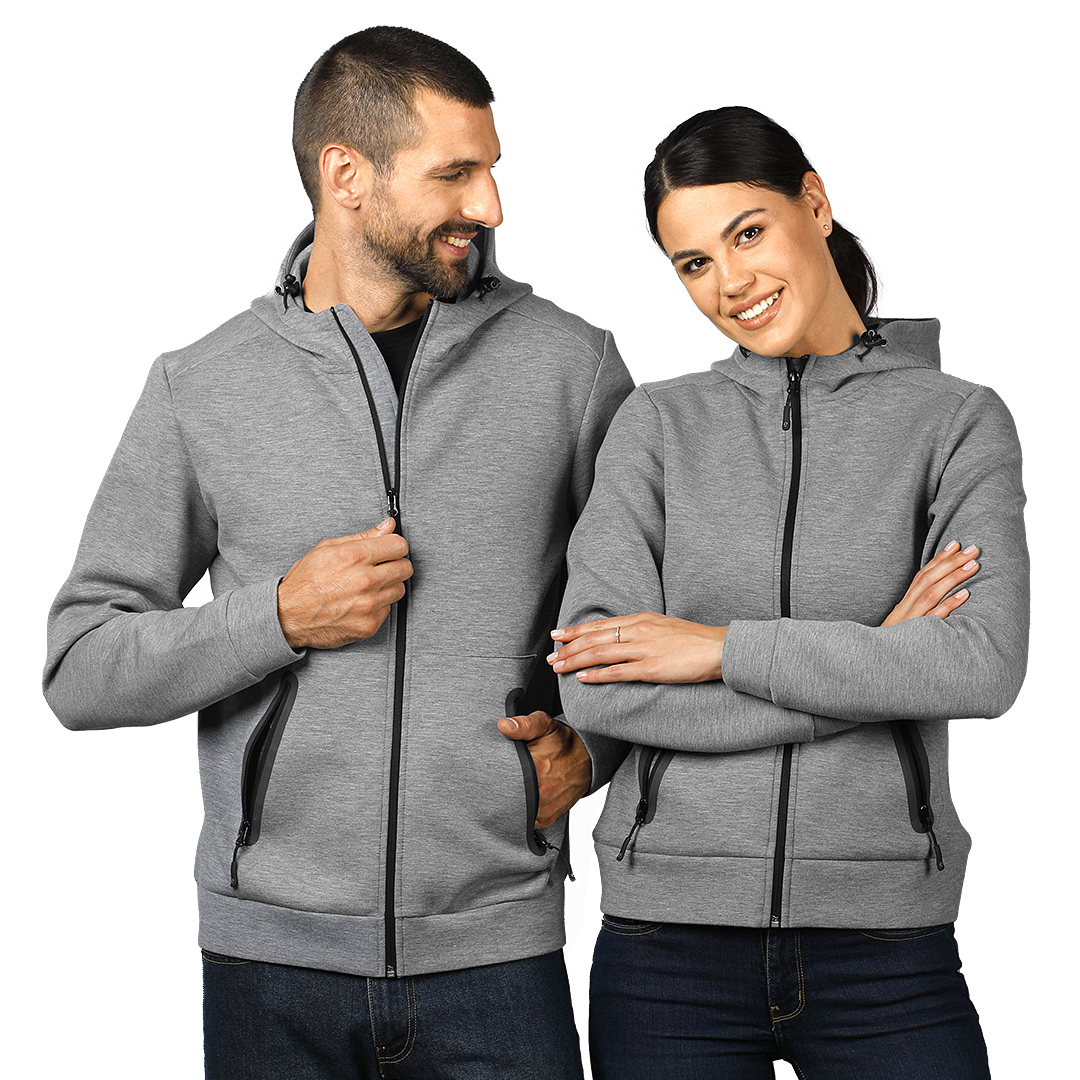 Dukserica, dva prednja džepa, učkuri u kapuljači, ranfle na rukavima i dnu, dodatni štepovi na ramenima, rukavima i dnu