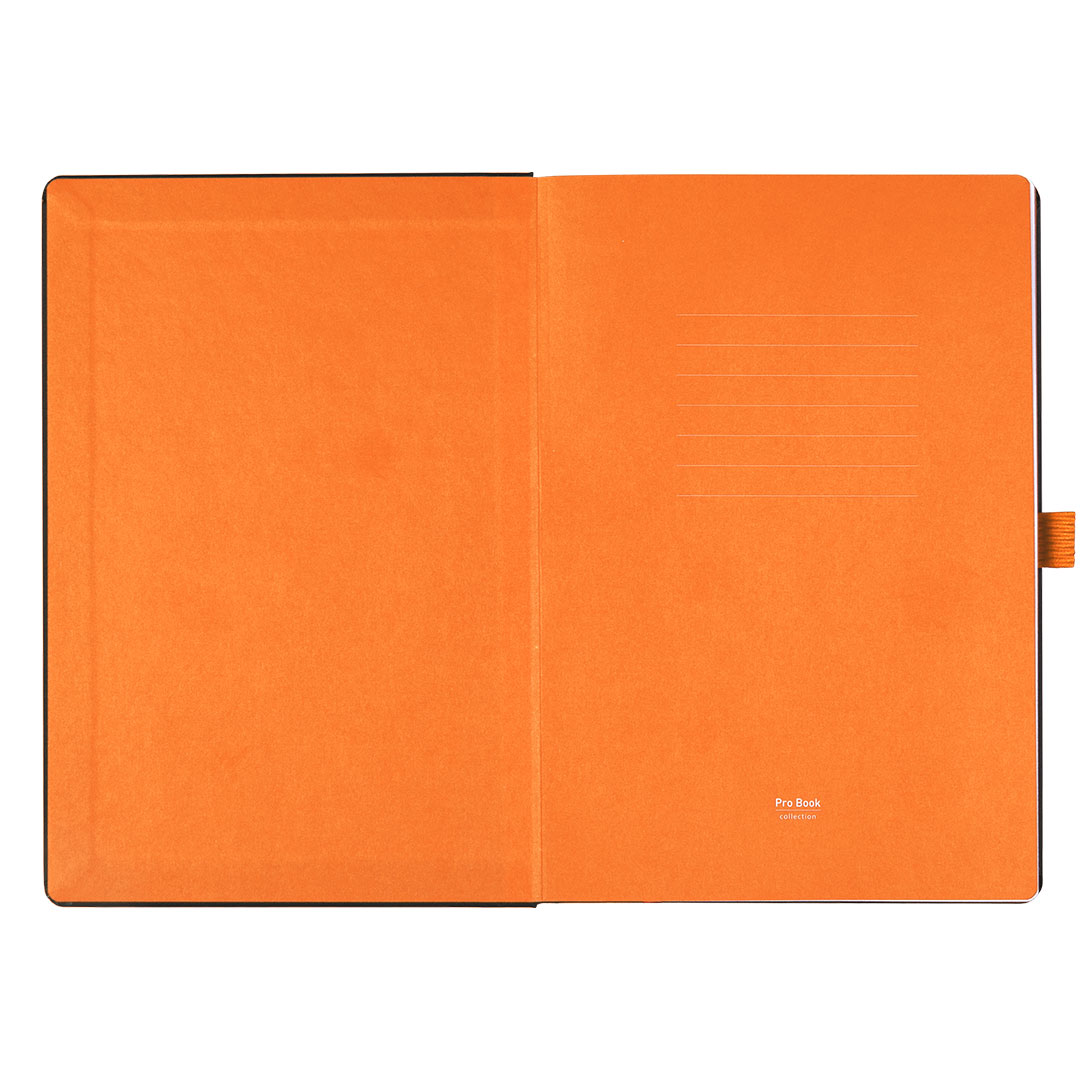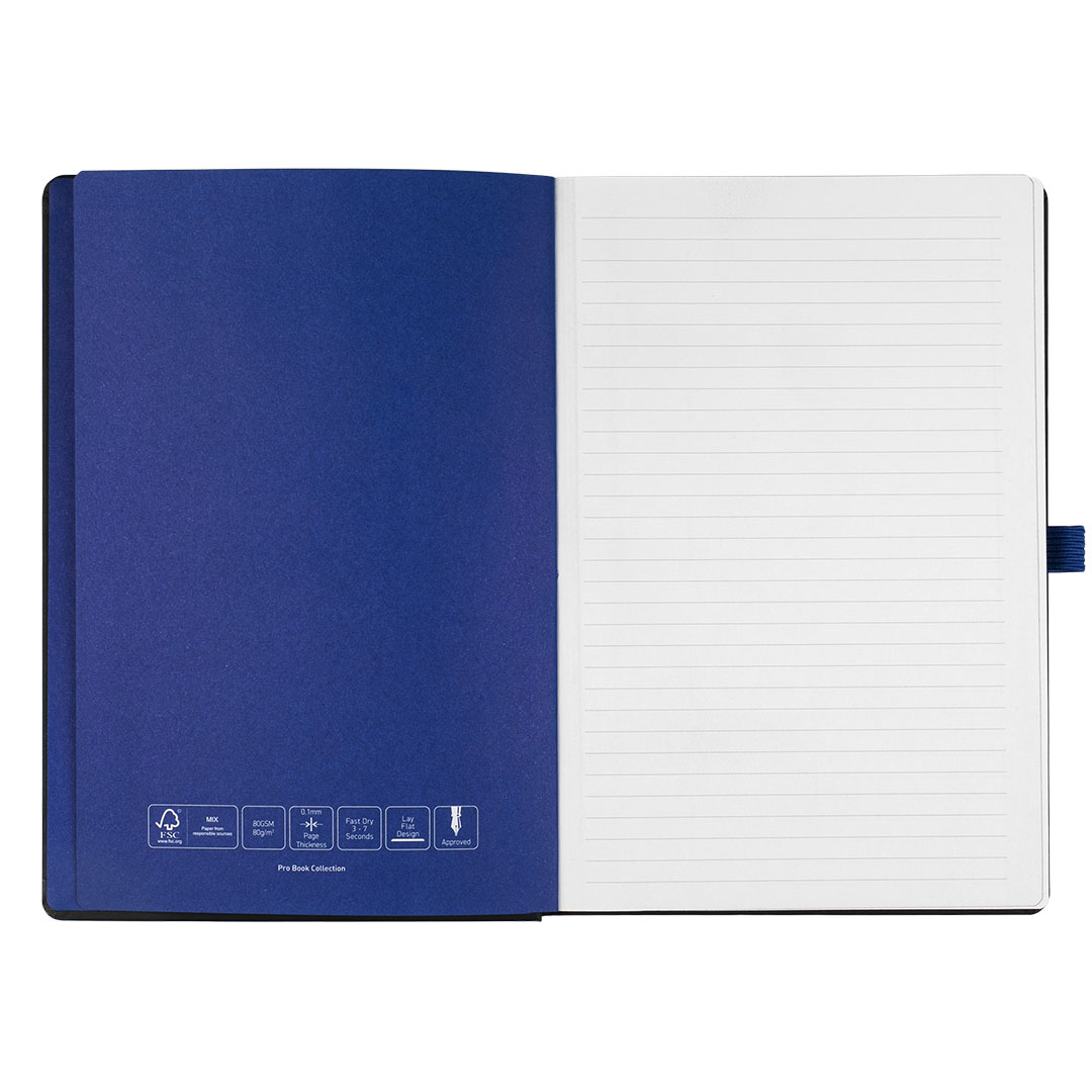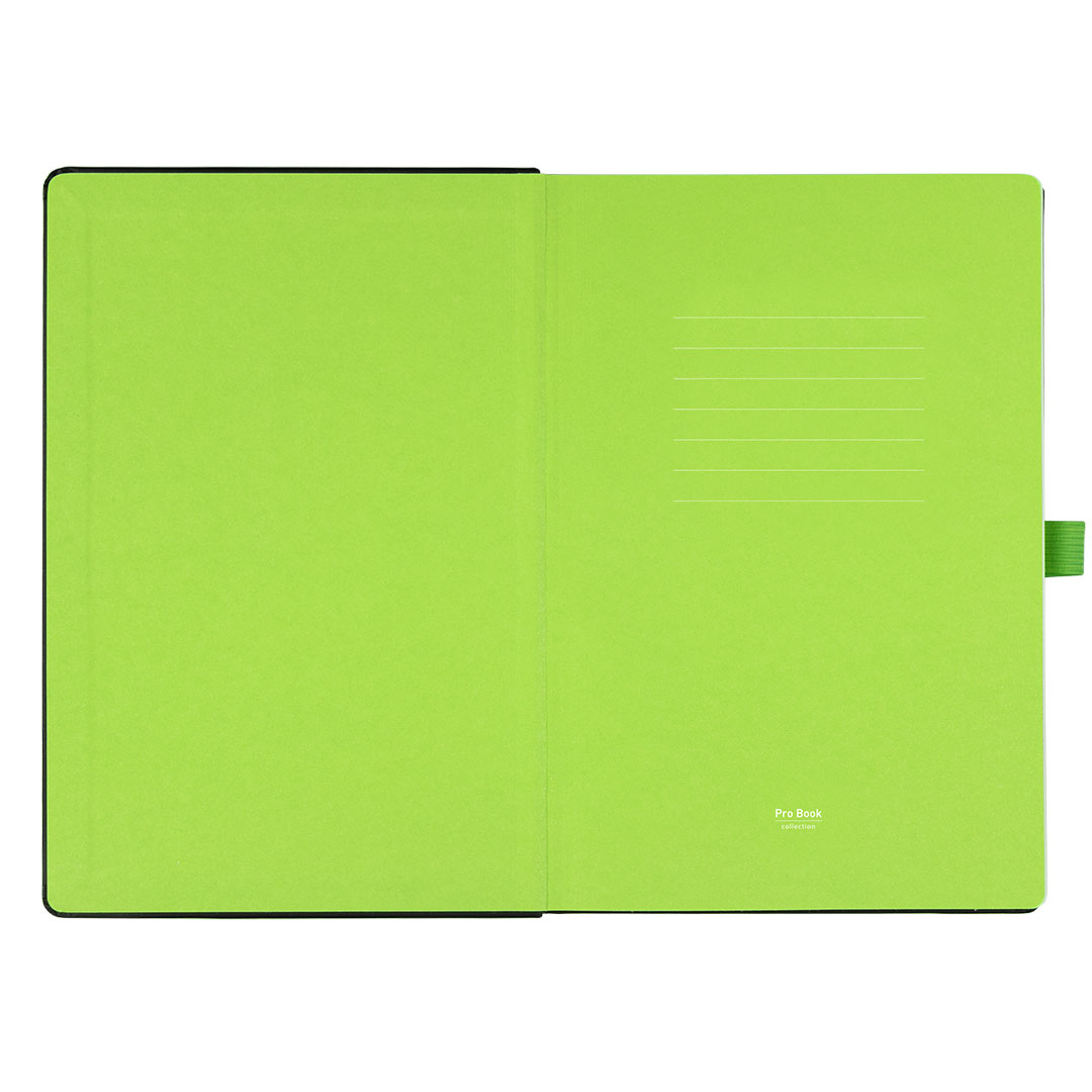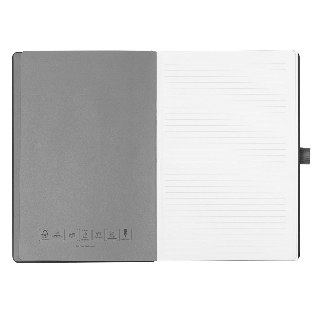 Notes sa zaobljenim ivicama, bojenom ivicom knjižnog bloka u boji elastične trake, bojenim predlistom u boji elastične trake, elastičnom trakom i držačem za olovku