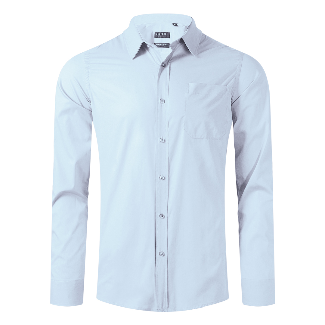 Muška košulja, klasičan kroj, sa lajsnom, džep sa leve strane grudi, sedam dugmadi napred, tri dugmeta na manžetnama, rezervna dugmad, sva dugmad u boji košulje, lako peglanje i održavanje