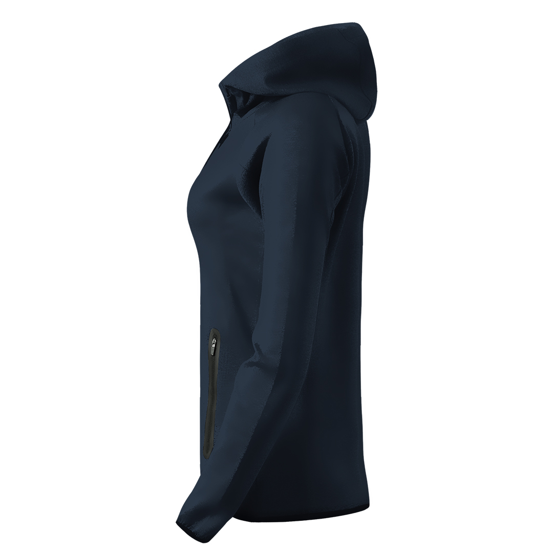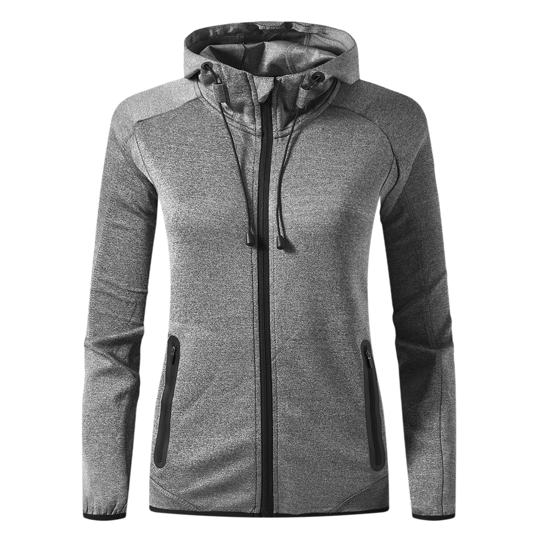 Ženska dukserica, 280 g/m2, blago strukirana, raglan rukavi, elastični učkuri sa steznim regulatorima u kapuljači, dva prednja džepa sa rajsferšlusom, elastični paspuli na rukavima i dnu