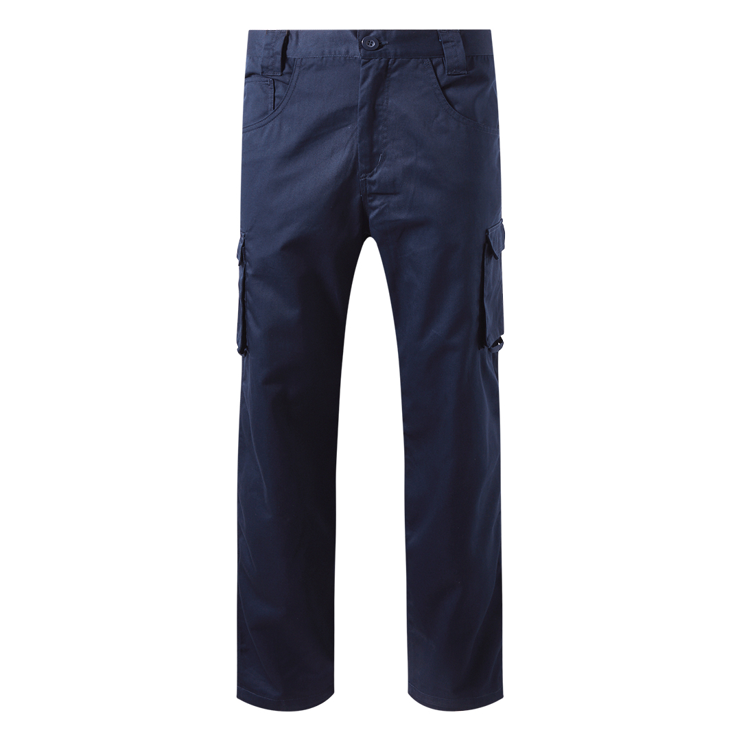 Pantalone, 240gr/m2, keper, dva prednja džepa, mali džep, dva džepa pozadi i dva sa strane, dve gajke za čekić, etiketa za lične podatke unutra, trostruki štepovi i ringlice, kao ojačanje