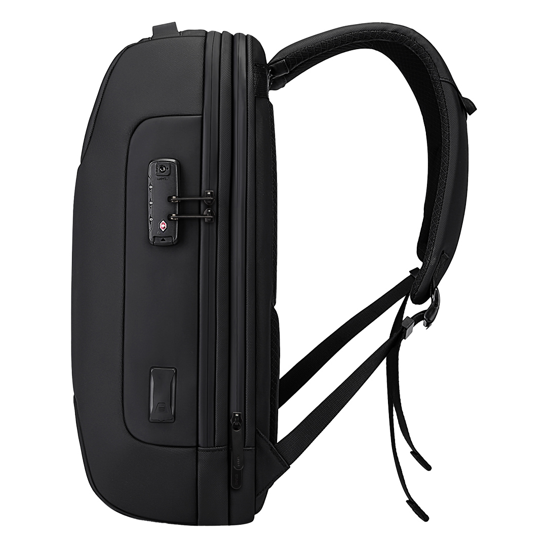 Poslovni ranac sa jednim glavnim odeljkom, odeljak za laptop veličine ekrana 15″, odeljak za tablet, vodootporni rajsferšlusi, džep sa rajsferšlusom napred, USB konektor, sigurnosna brava sa šifrom za zaključavanje ranca