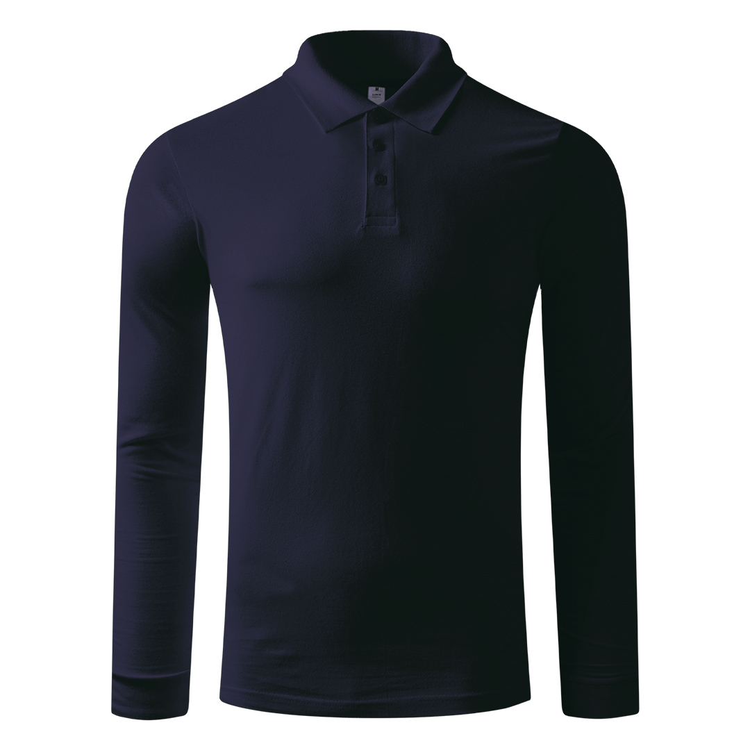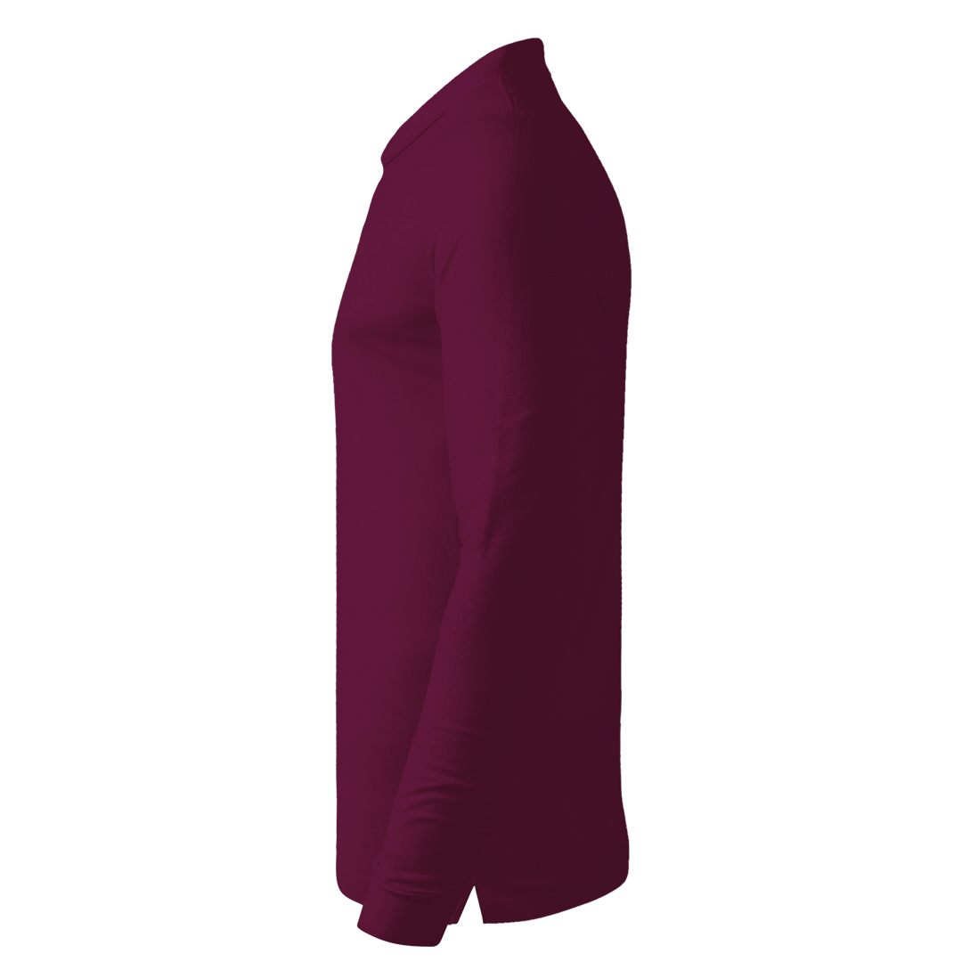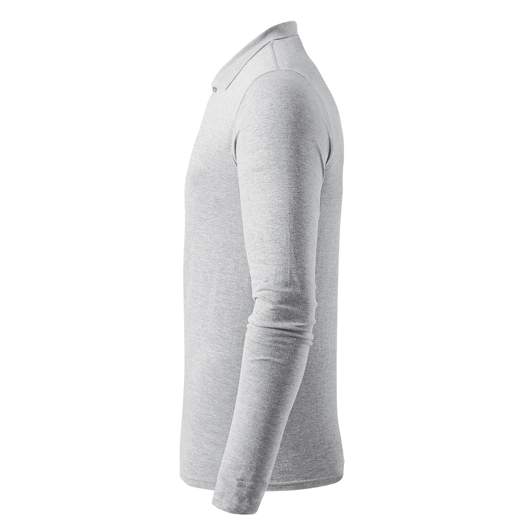 Polo majica dugih rukava, 200 g/m2, šivena sa strane, elastične ranfle na rukavima, dupli štep na dnu, tri dugmeta u boji majice, rezervno dugme, dodatni štep duž ramena, okovratnik ojačan trakom, šlicevi sa strane.