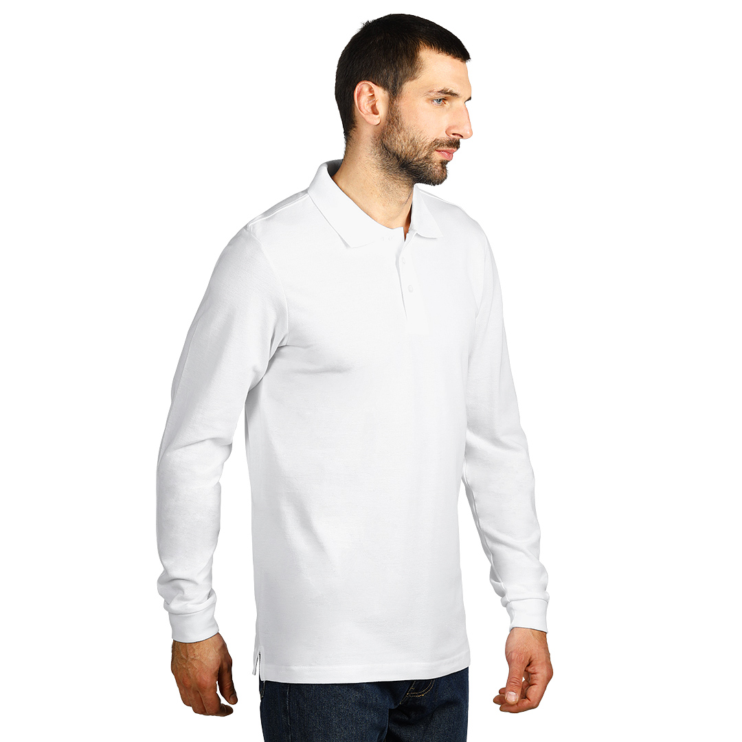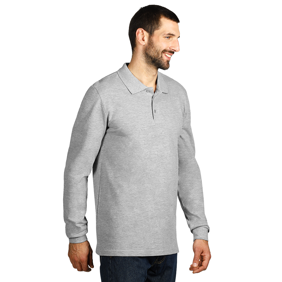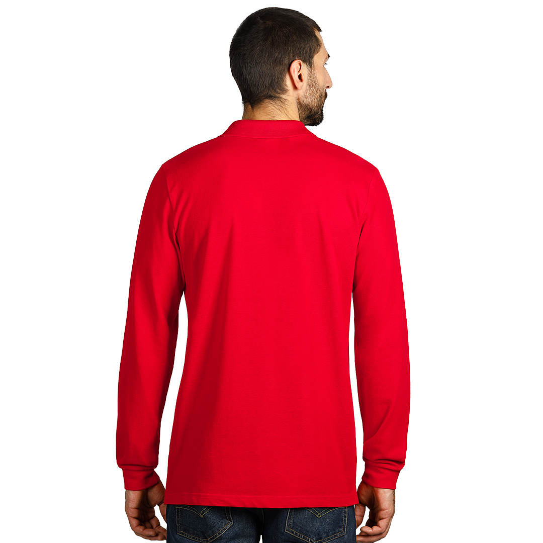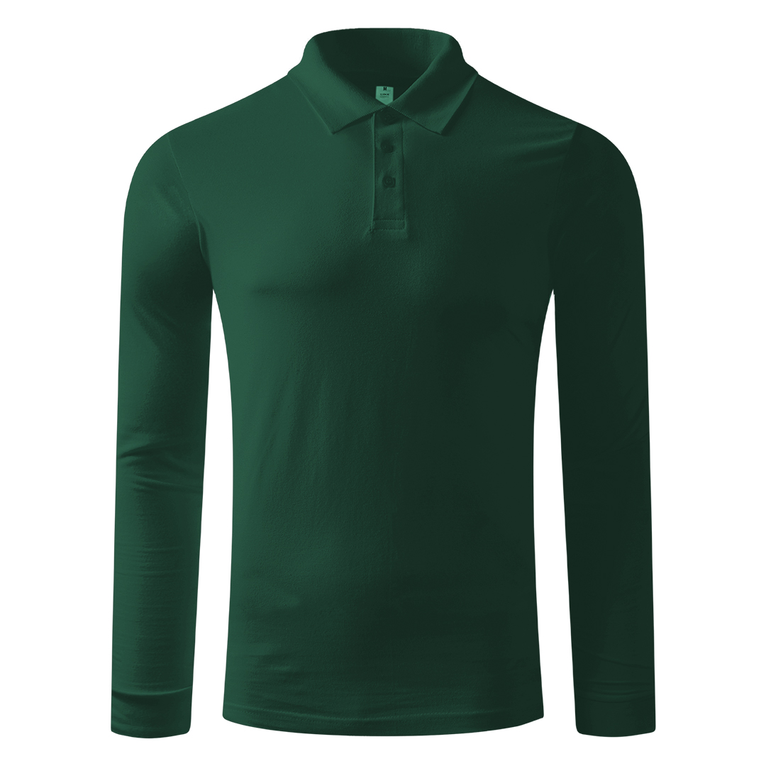 Polo majica dugih rukava, 200 g/m2, šivena sa strane, elastične ranfle na rukavima, dupli štep na dnu, tri dugmeta u boji majice, rezervno dugme, dodatni štep duž ramena, okovratnik ojačan trakom, šlicevi sa strane.