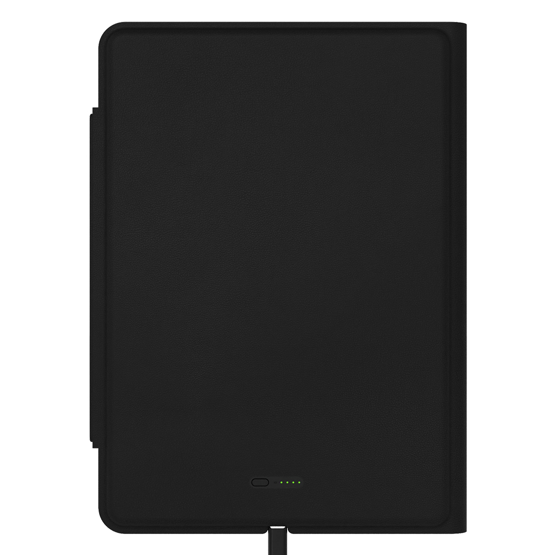 Ugrađena pomoćna baterija kapaciteta 5.000 mAh omogućava punjenje uređaja u pokretu, dok bežični punjač sa magnetom pruža dodatnu praktičnost za punjenje mobilnog telefona bez kablova. Portfolio je opremljen Type-C portom i Type-C kablom, što omogućava savremenu i univerzalnu kompatibilnost sa uređajima. Posebna prednost je i mogućnost bežičnog punjenja slušalica, čineći ovaj portfolio kompletnim mobilnim radnim alatom.