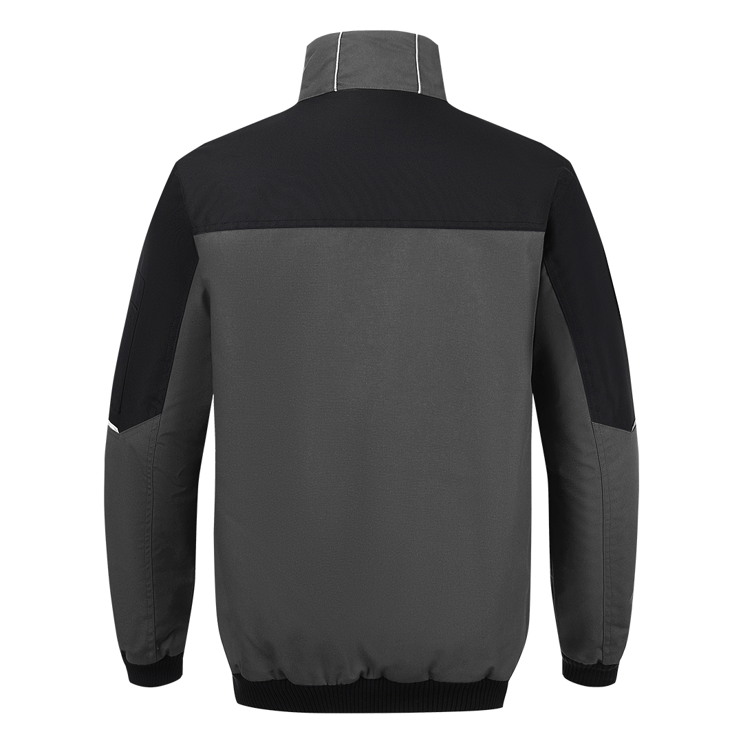 Bluza, 270gr/m2, platno prepletaj, visoka kragna, preklop sa čičak trakama preko rajsferšlusa, elastične ranfle oko rukava, ojačanja od 600D poliestera na mestima izloženim većem habanju (džepovi, ramena, laktovi), duži zadnji deo, dva džepa na grudima, dva prednja džepa, praktični odeljci za alat, reflektivni detalji, etiketa za lične podatke unutra