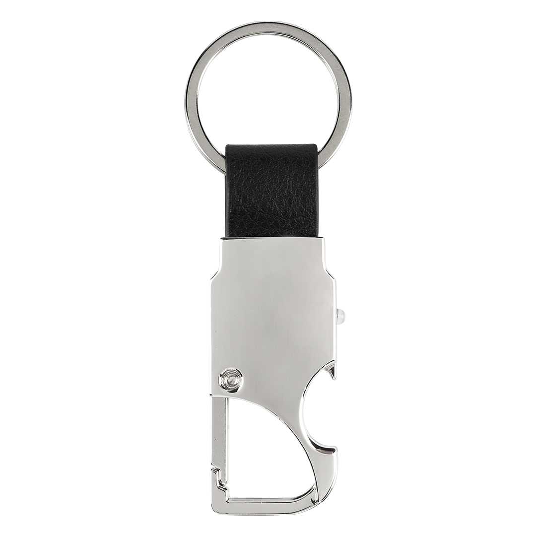 Metalni privezak za ključeve sa otvaračem za flaše, karabinjerom i baterijskom lampom