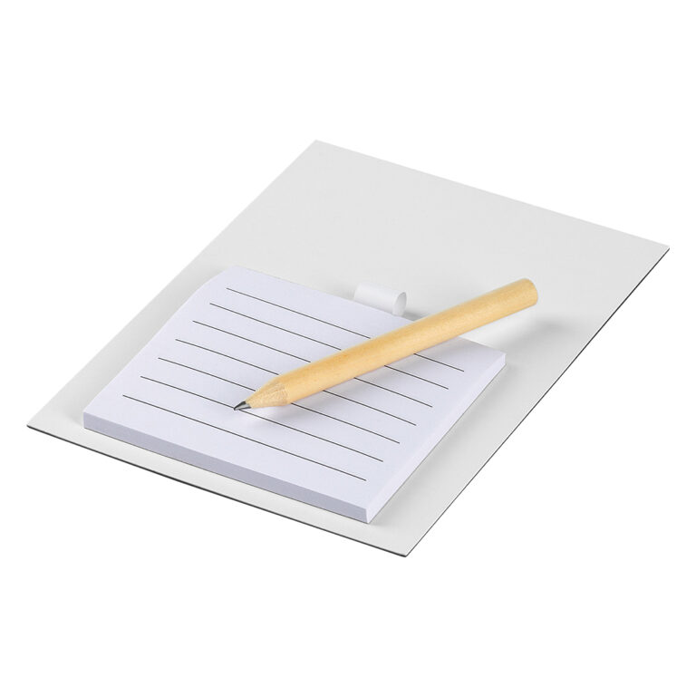 Set za beleške Set sadrži: drveni lenjir, hemijsku olovku, zarezač, gumicu za brisanje, dve olovke, blok za beleške sa 40