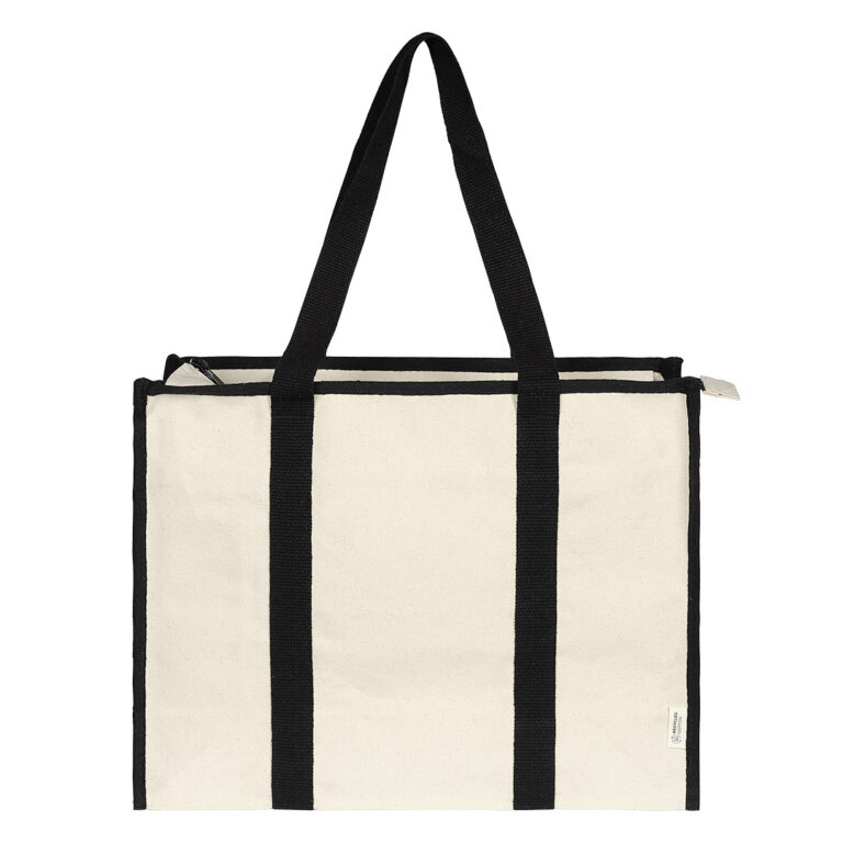 Torba, 340 g/m2 Pamučna torba sa ručkom drugačije boje od boje platna, zatvara se zipom na vrhu, unutrašnji džep koji