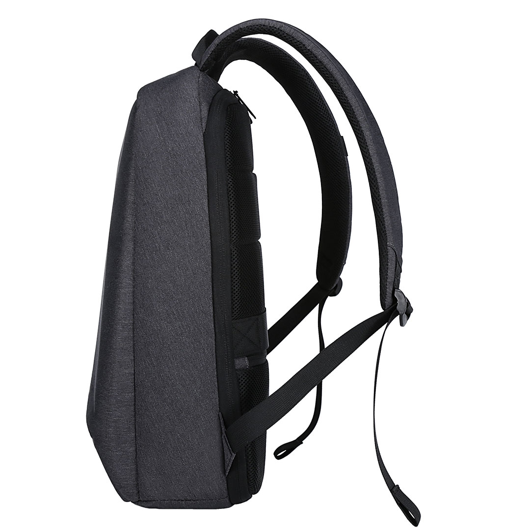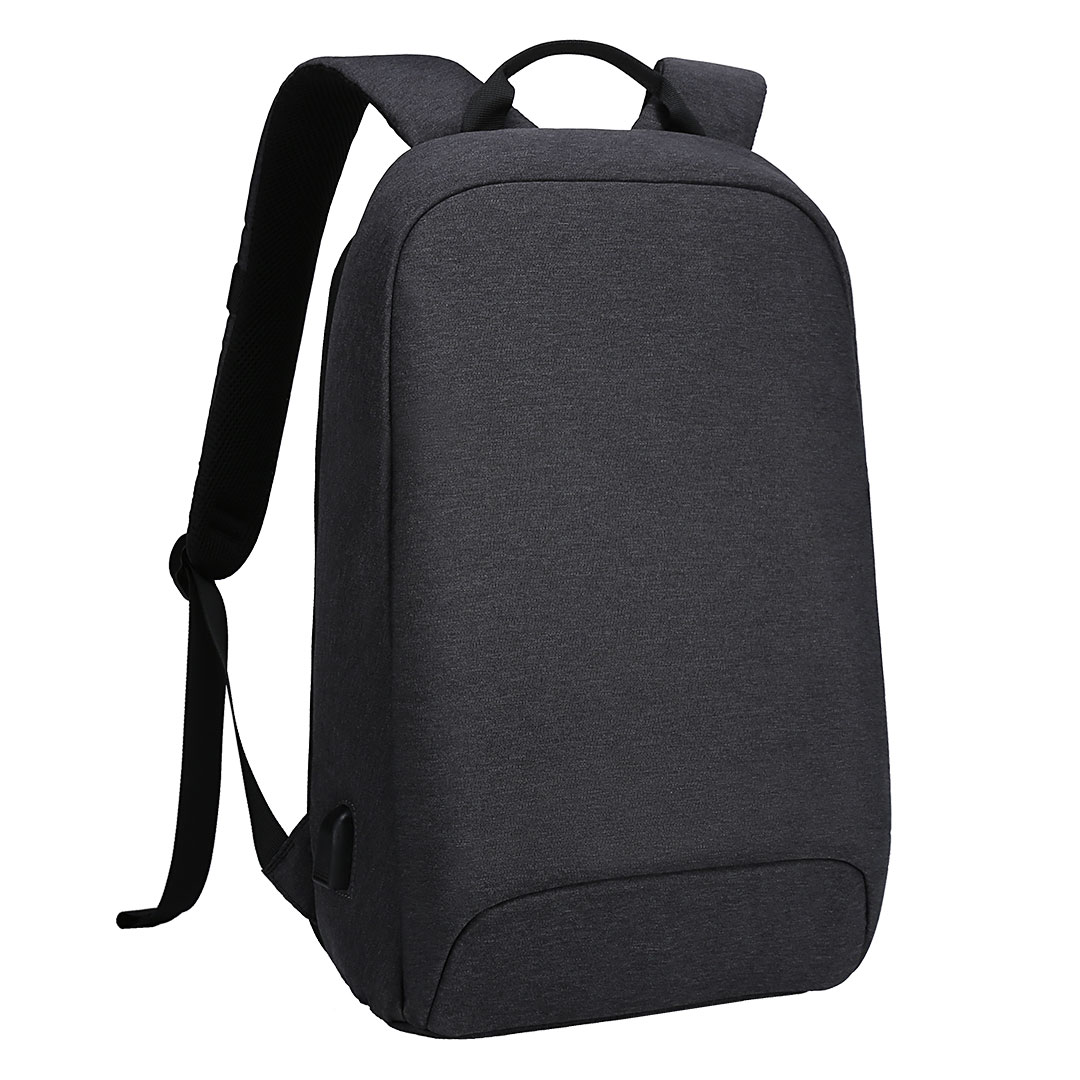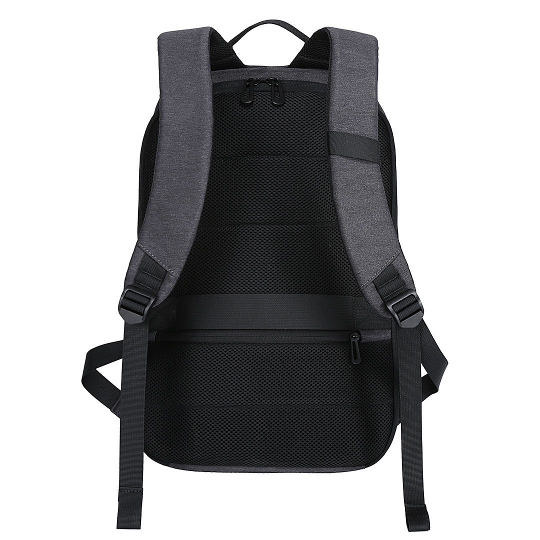 Poslovni ranac sa jednim glavnim odeljkom, naloženi odeljci za tablet i laptop veličine ekrana 15″, USB konektor, skriveni džep sa rajsferšlusom pozadi