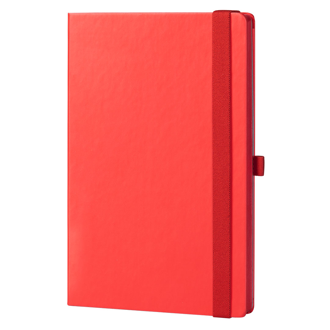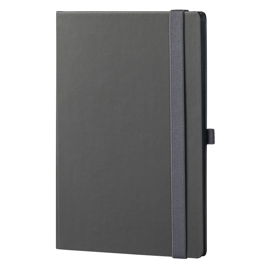 Notes sa zaobljenim ivicama, bojenom ivicom knjižnog bloka u boji korice, elastičnom trakom, držačem za olovku i džepom na unutrašnjoj strani zadnje korice