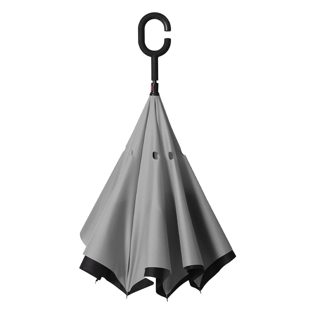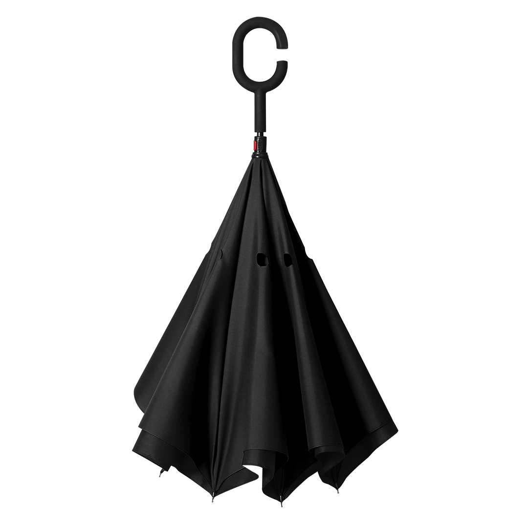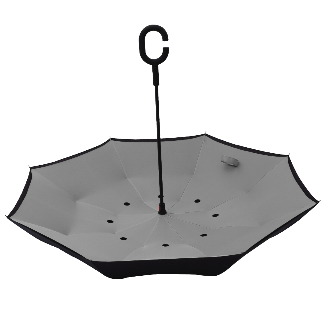 Kišobran sa 8 panela, gumirana “C” drška, metalni stub presvučen plastikom u crnoj boji (Ø 12 mm), plastični vrh i metalni krajevi