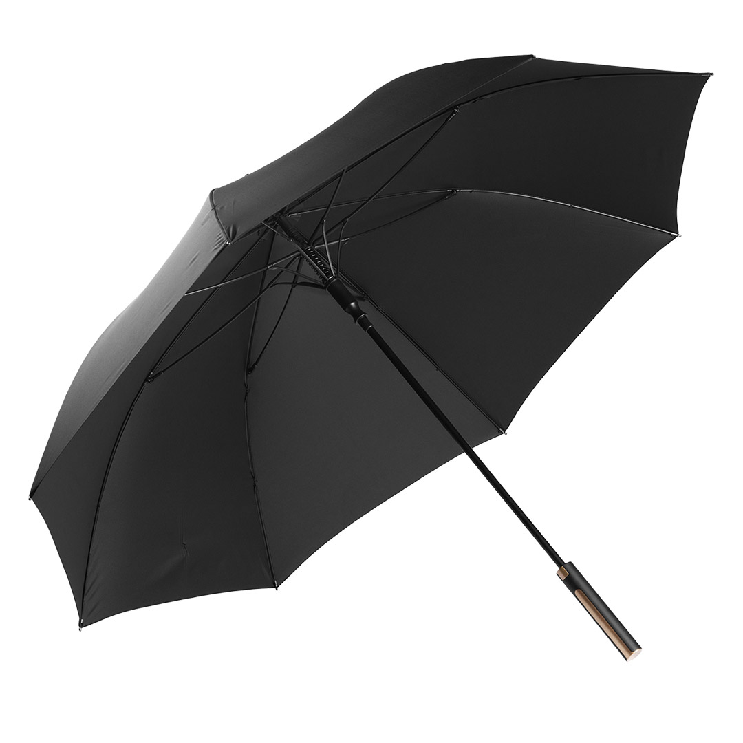 Kišobran sa 8 panela, PU drška sa kombinacijom sive boje, crni fiberglass vrh i stub (Ø 14 mm), fiberglass mehanizam za otvaranje, metalni krajevi, navlaka sa postavom u boji kišobrana