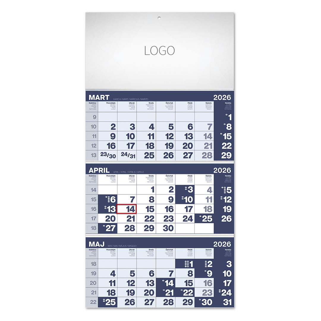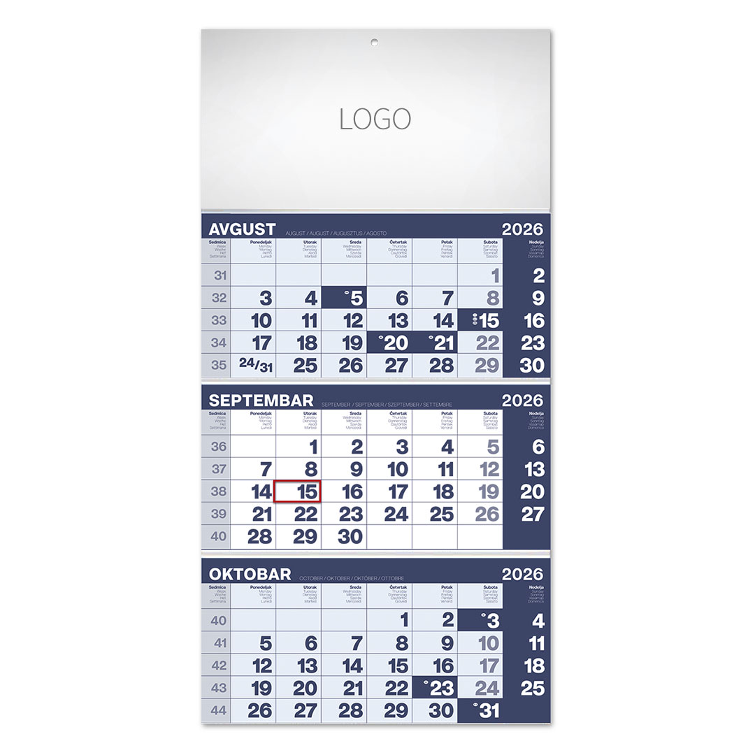 Zidni kalendar, 3 x 12 listova, tromesečni, trodelni