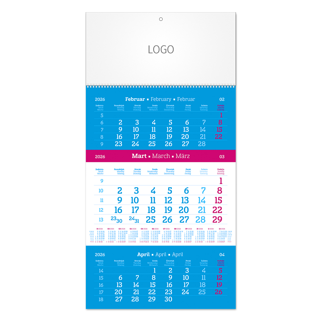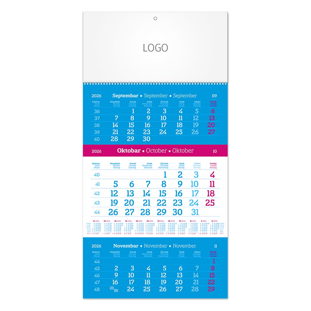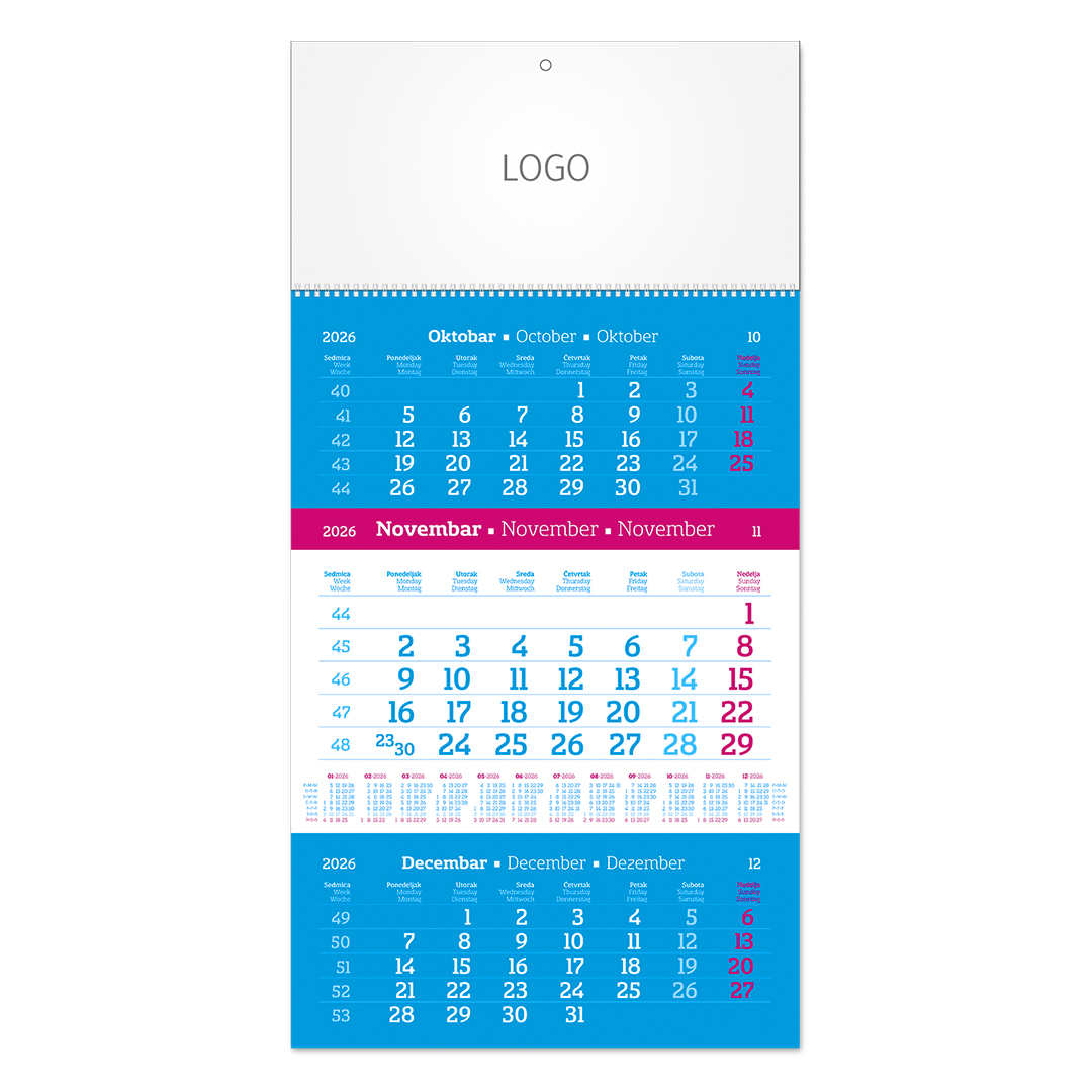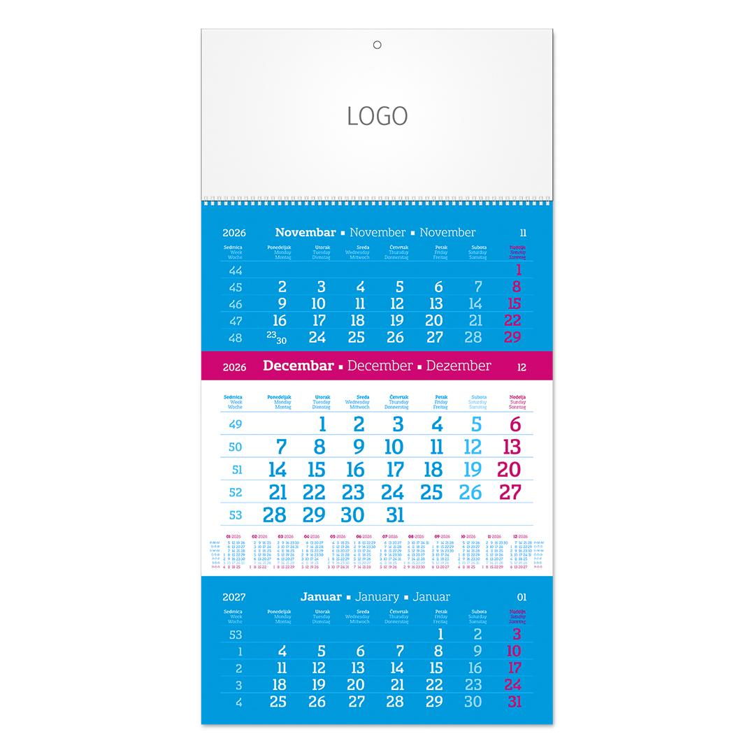 Zidni kalendar: 12 listova, tromesečni, jednodelni