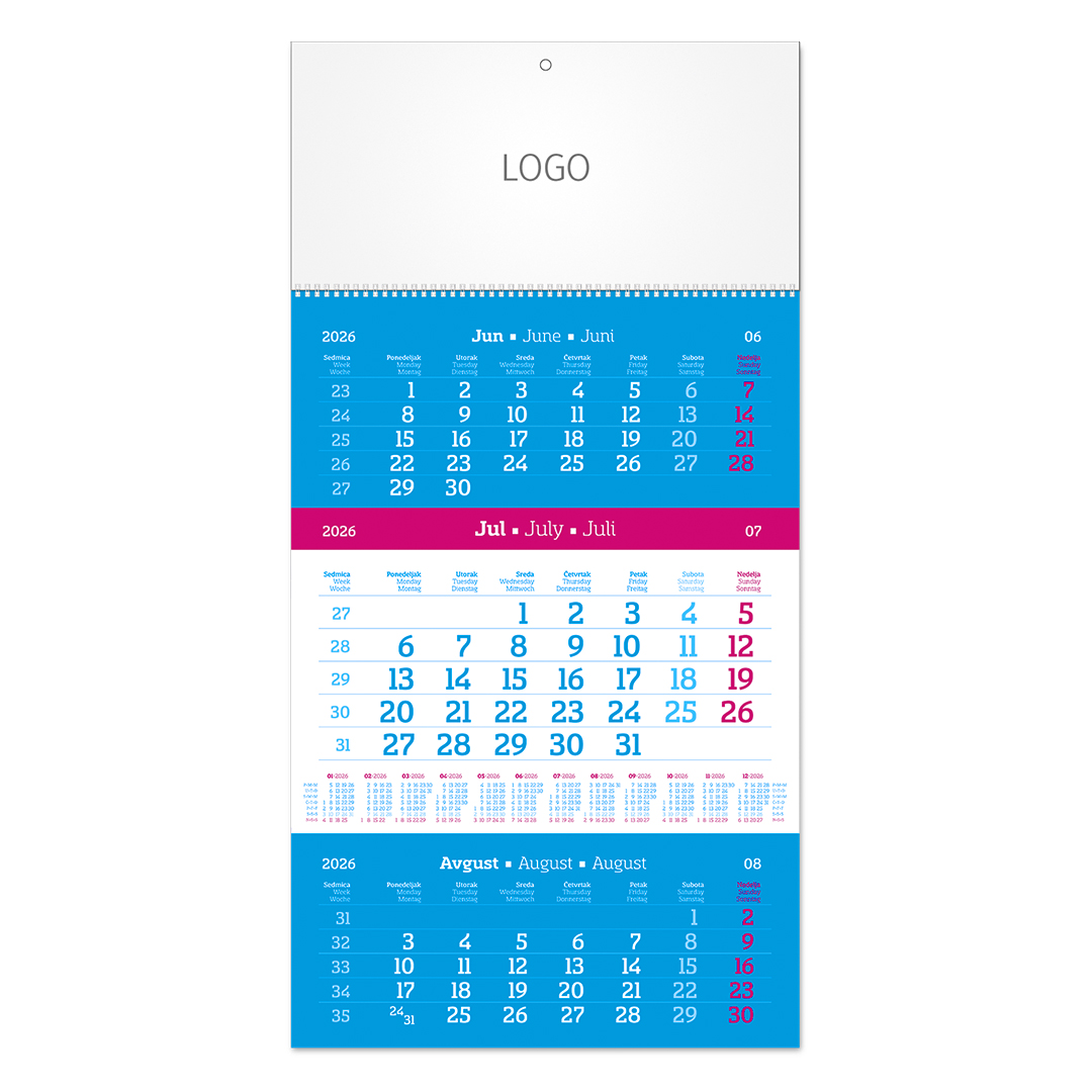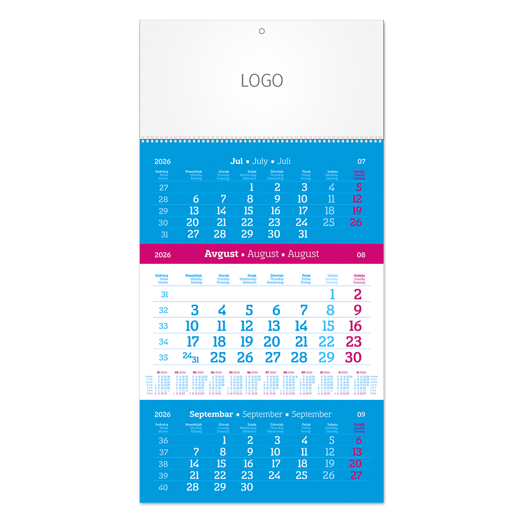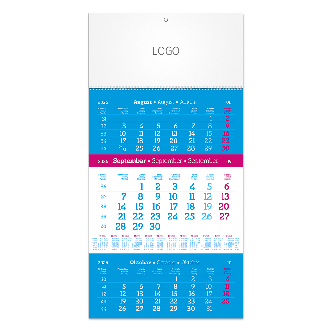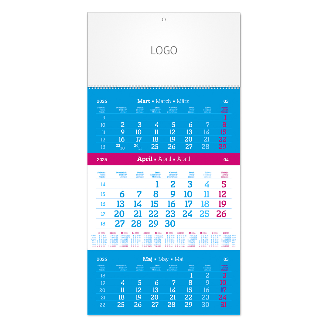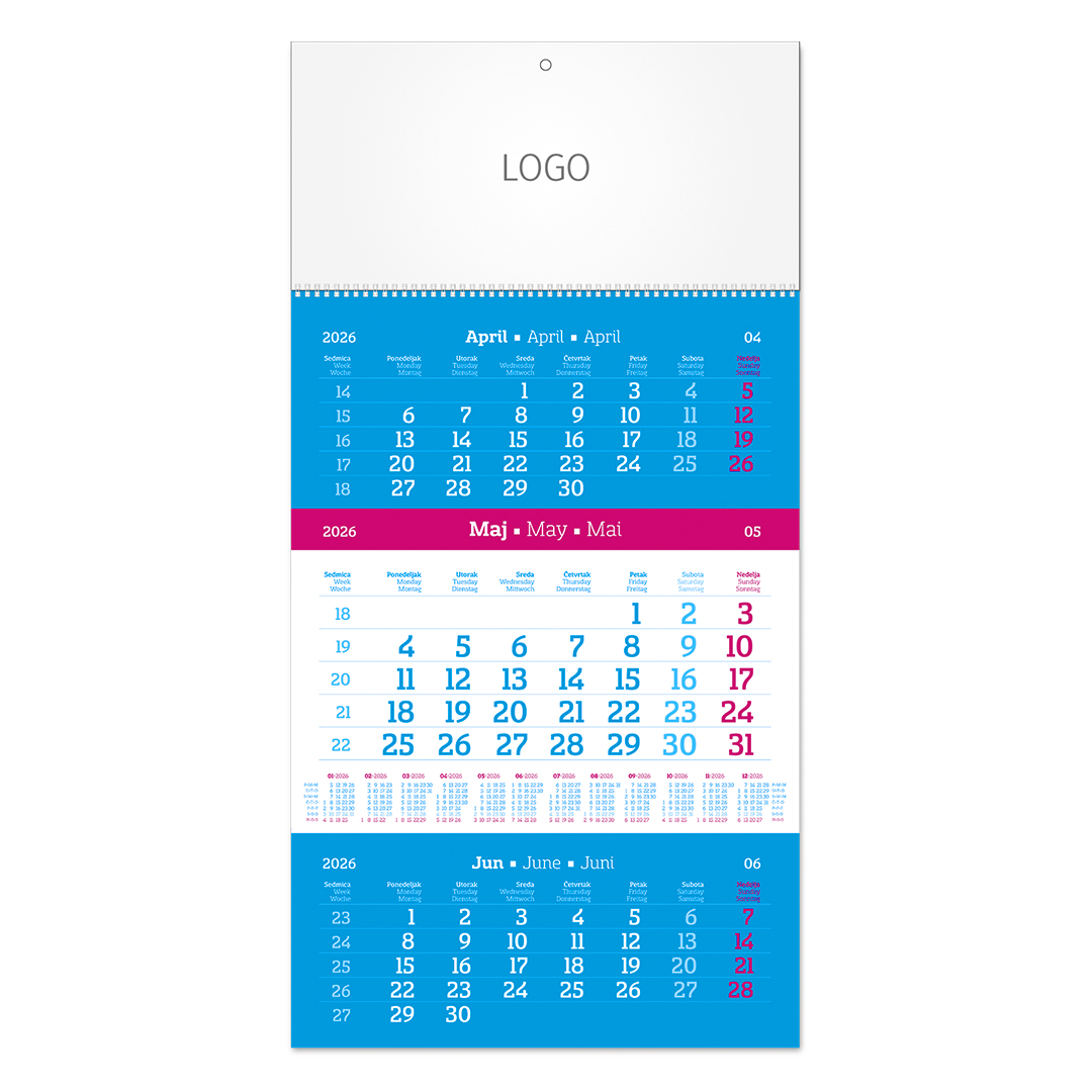 Zidni kalendar: 12 listova, tromesečni, jednodelni