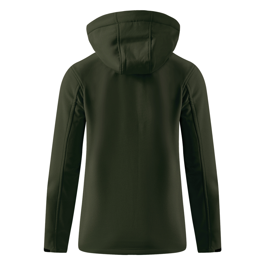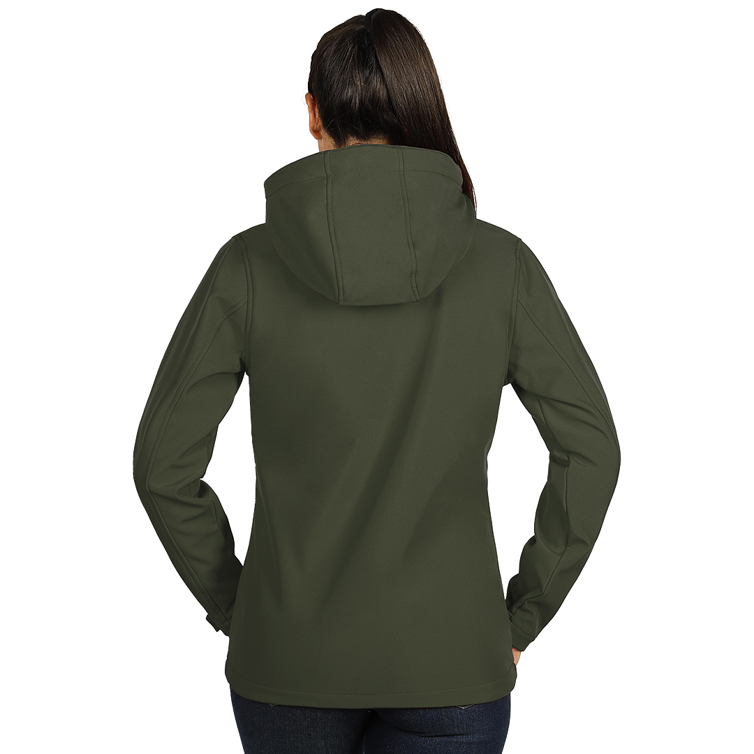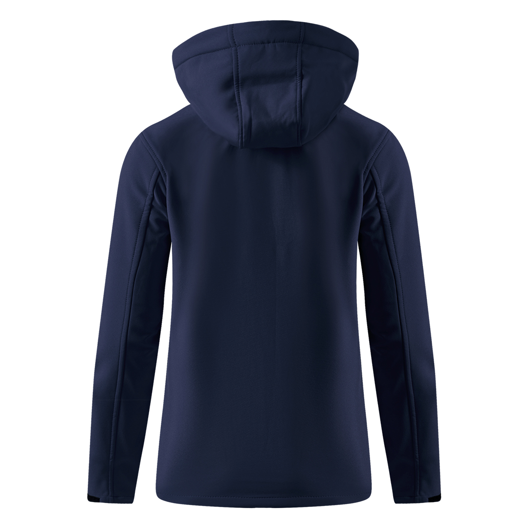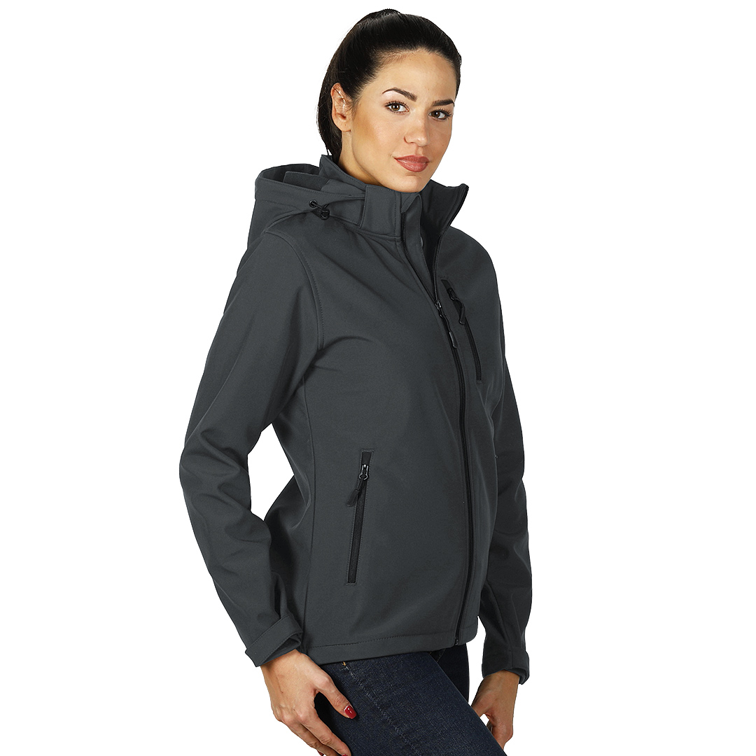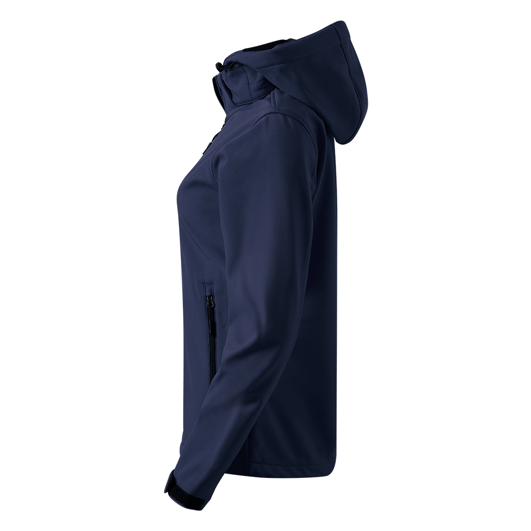 Ženska jakna, blago strukirana, visoka kragna, elastični učkuri sa steznim regulatorima u kapuljači, čičak traka za podešavanje širine na dnu rukava, dva prednja džepa sa rajsferšlusom i jedan džep na grudima