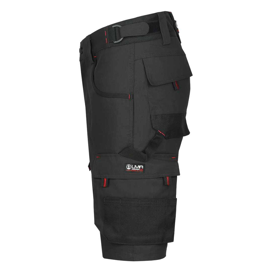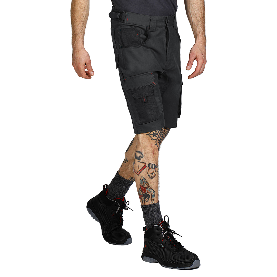 Bermude, 300g/m2 platno prepletaj, ojačanja od 900D poliestera na mestima izloženim većem habanju, dva prednja džepa, dva pozadi i dva džepa sa strane sa praktičnim odeljcima za alat, pojas sa čičak trakom za podešavanje širine struka za dodatnu udobnost