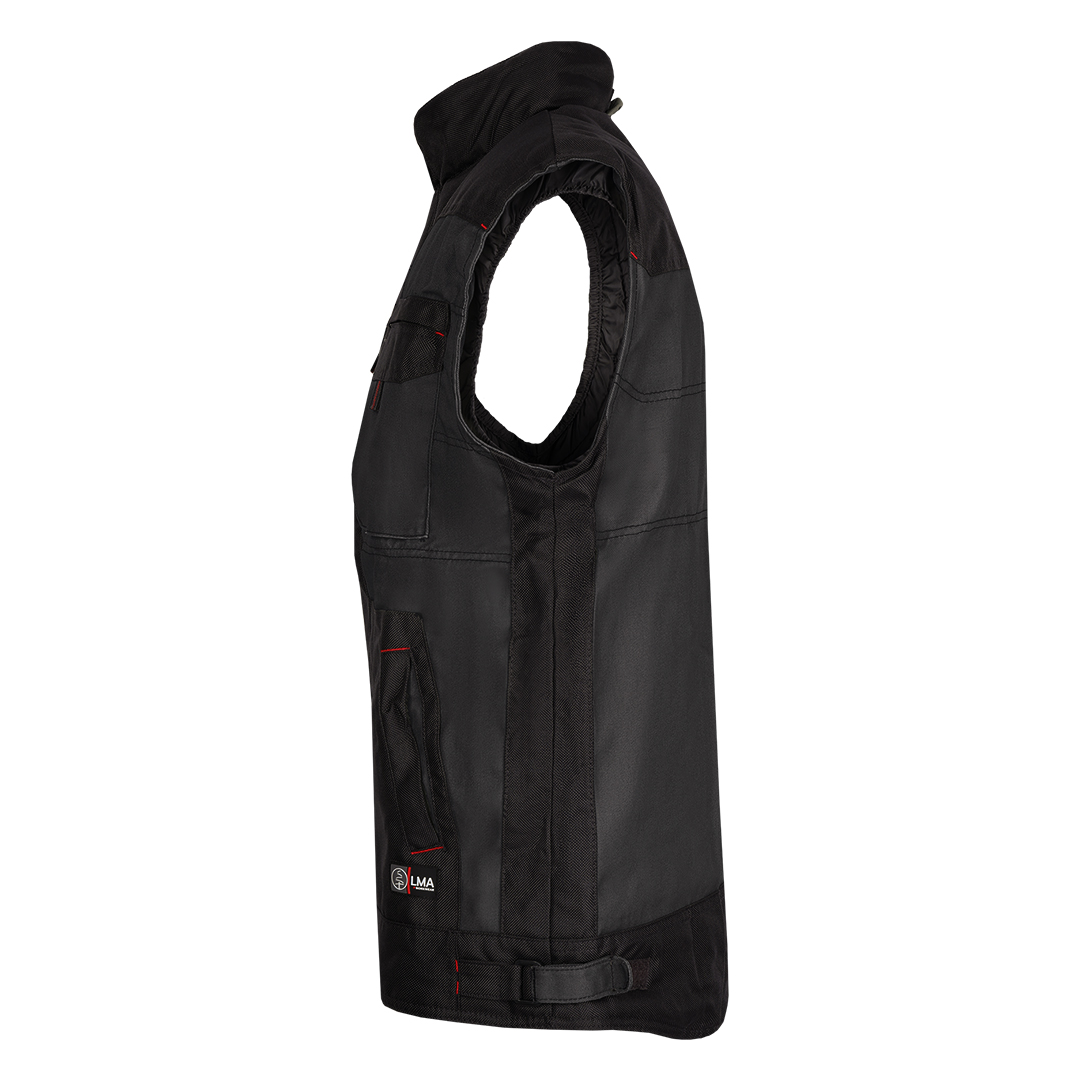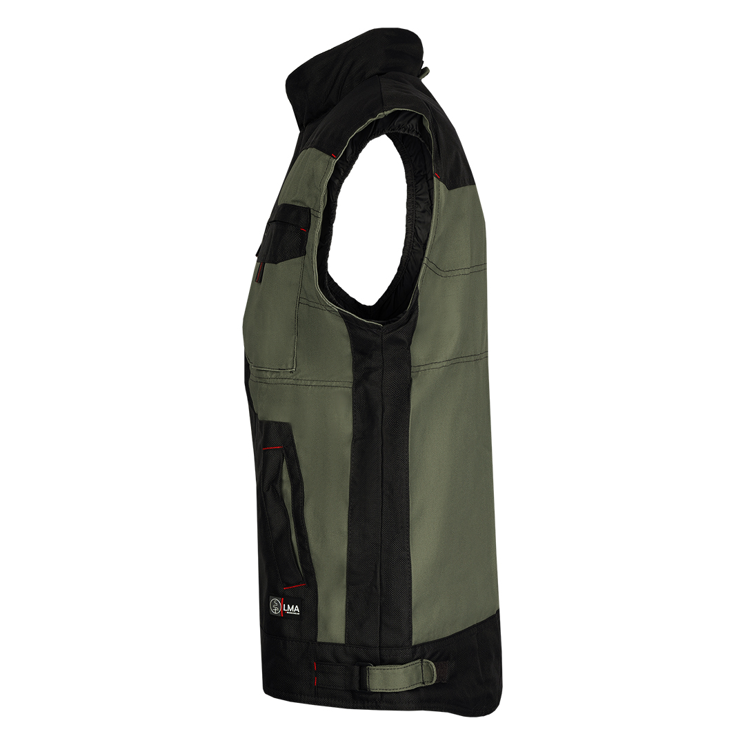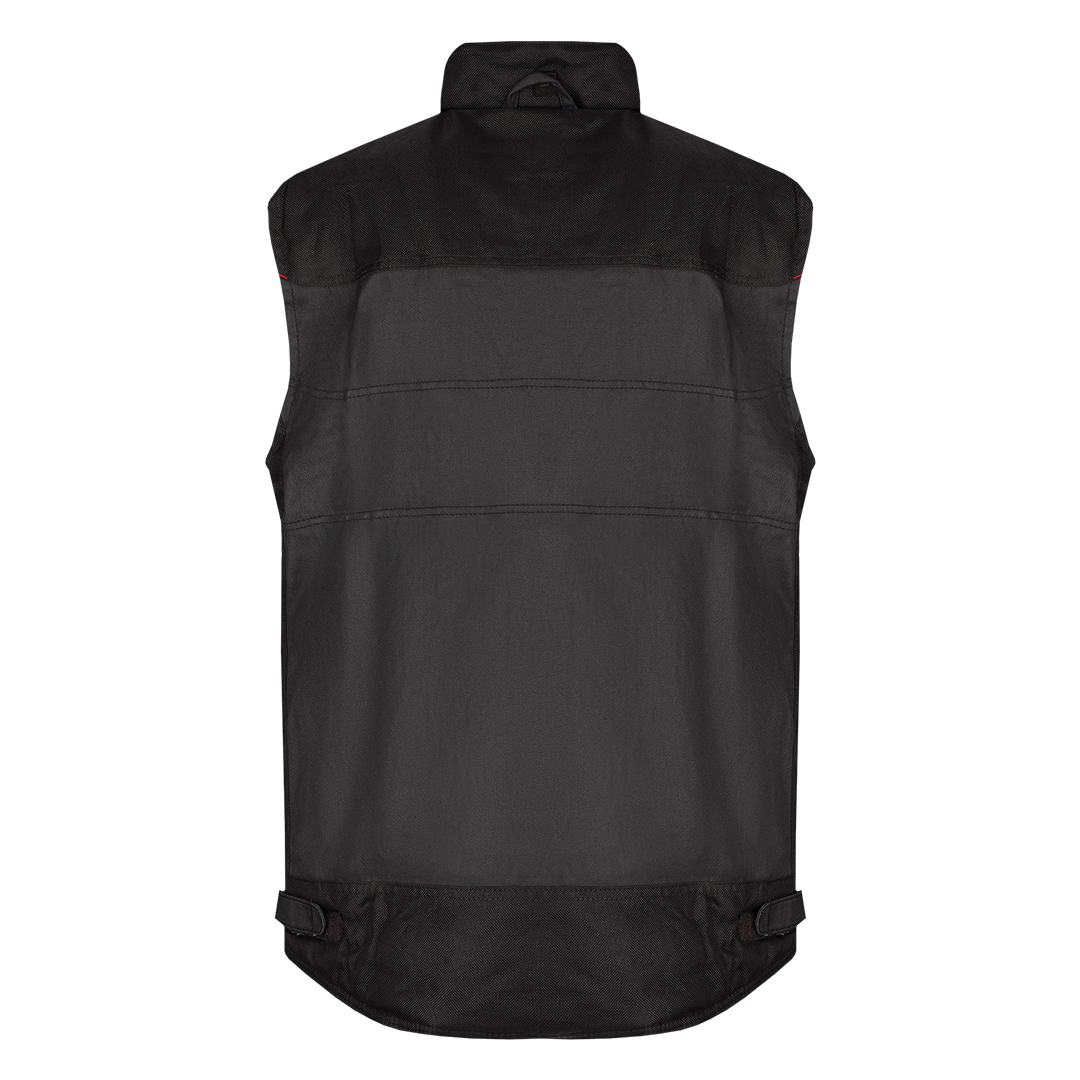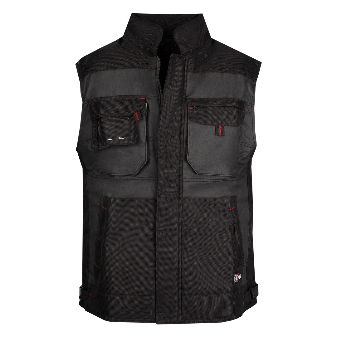 Radni prsluk, 300 g/m2, platno prepletaj, visoka kragna, ojačanja od 900D poliestera na mestima izloženim većem habanju, dva džepa na grudima uključujući odeljak za identifikacionu karticu, dva prednja džepa, jedan unutrašnji džep, čičak trake na dnu za podešavanje širine u struku, skriveni unutrašnji rajsferšlus na leđima za lakši pristup prilikom štampanja