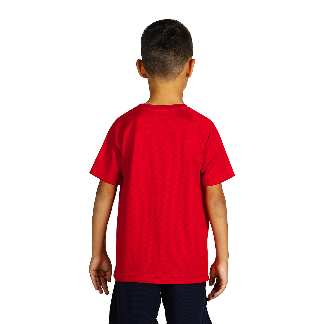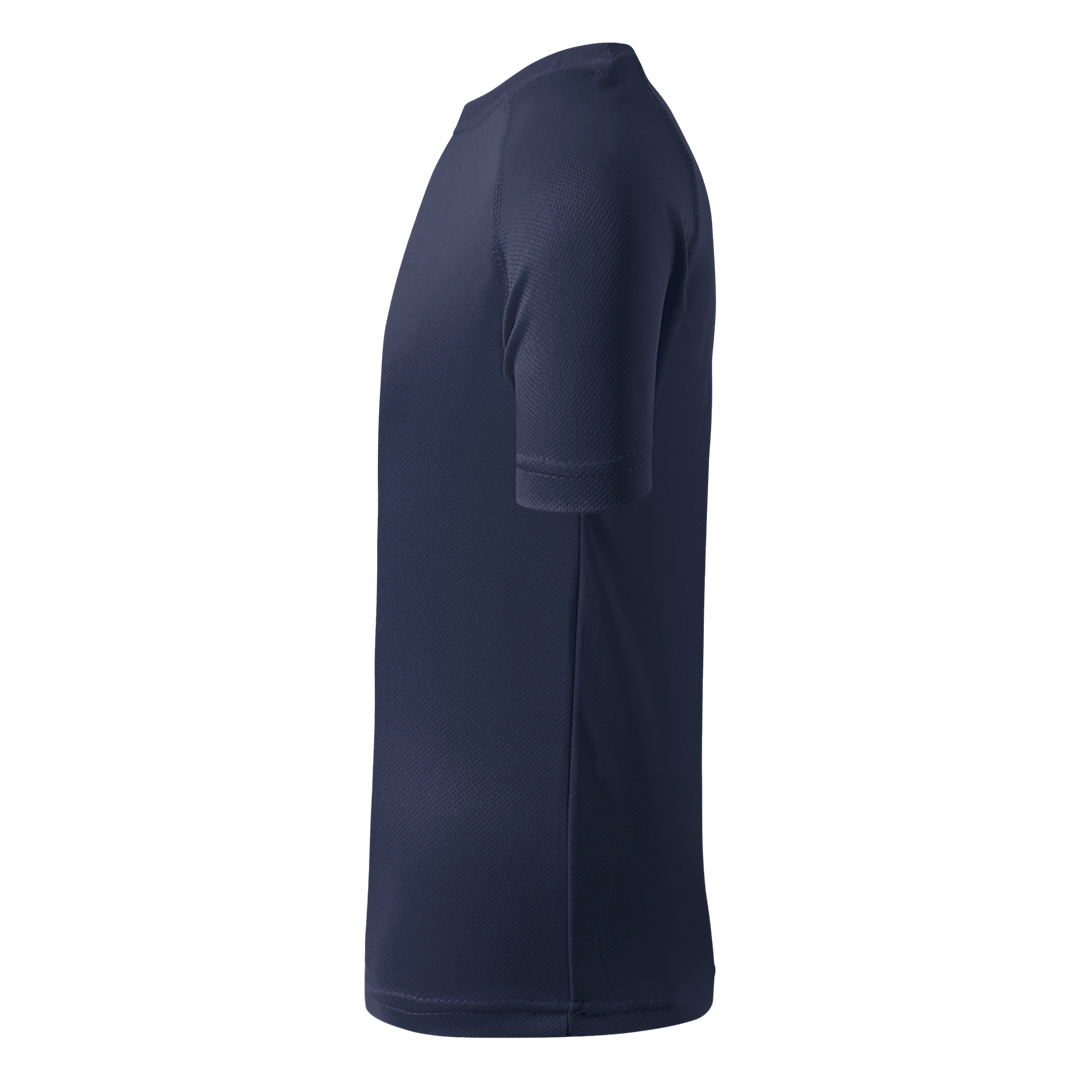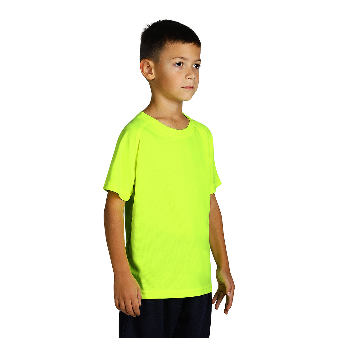 Dečja sportska majica, 130 g/m2, šivena sa strane, okovratnik od identičnog materijala kao telo majice, tkanina sa funkcijom upijanja i brzog sušenja