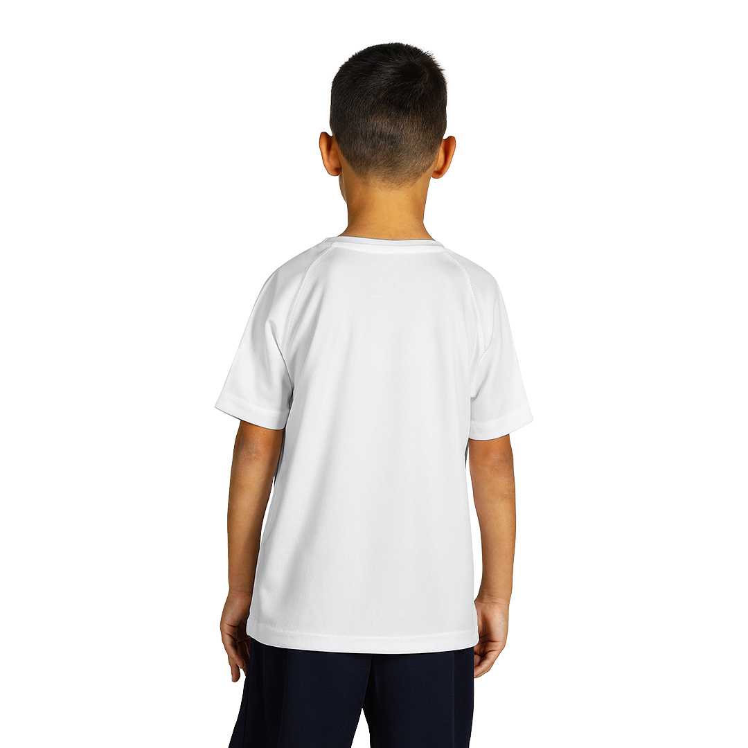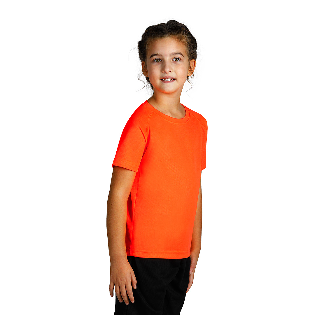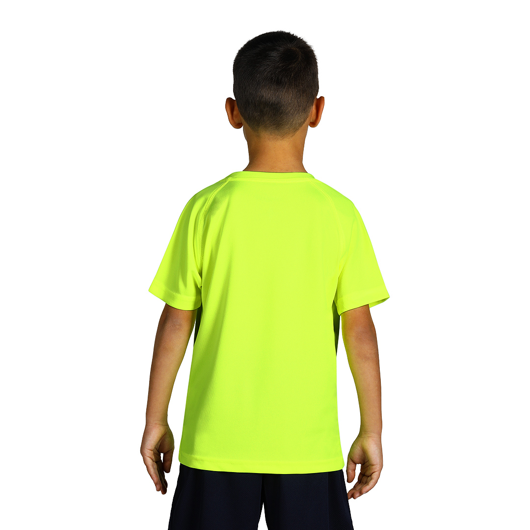 Dečja sportska majica, 130 g/m2, šivena sa strane, okovratnik od identičnog materijala kao telo majice, tkanina sa funkcijom upijanja i brzog sušenja