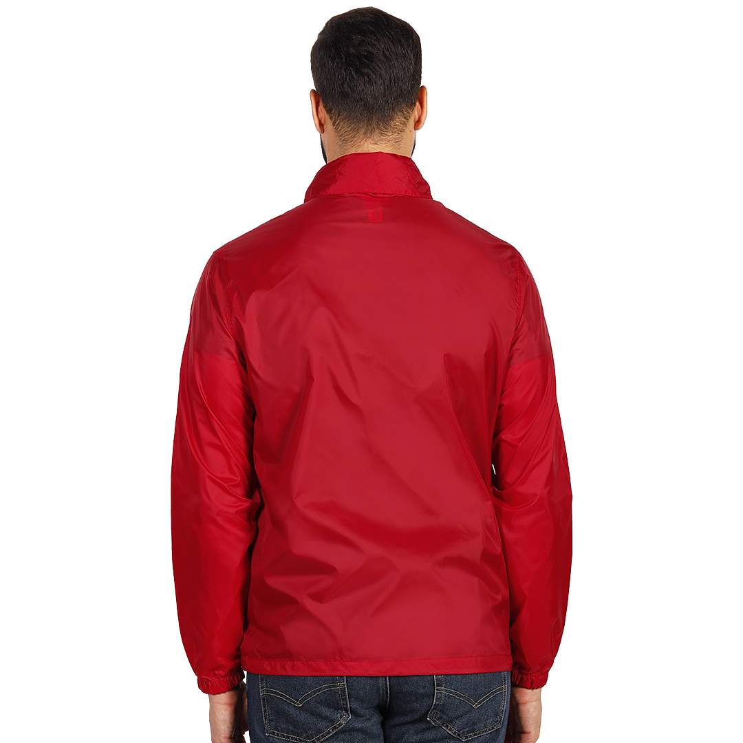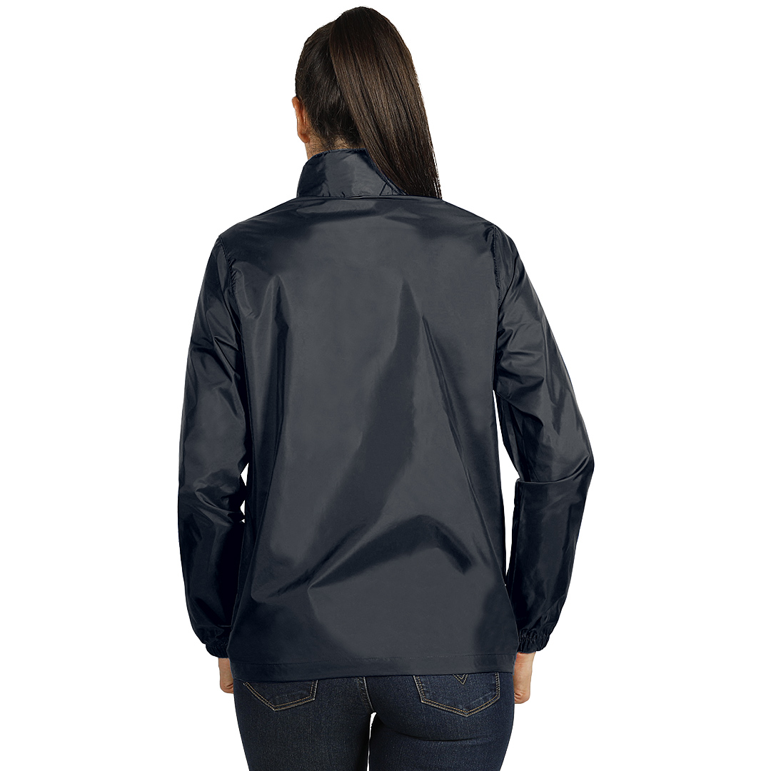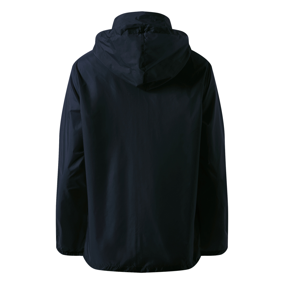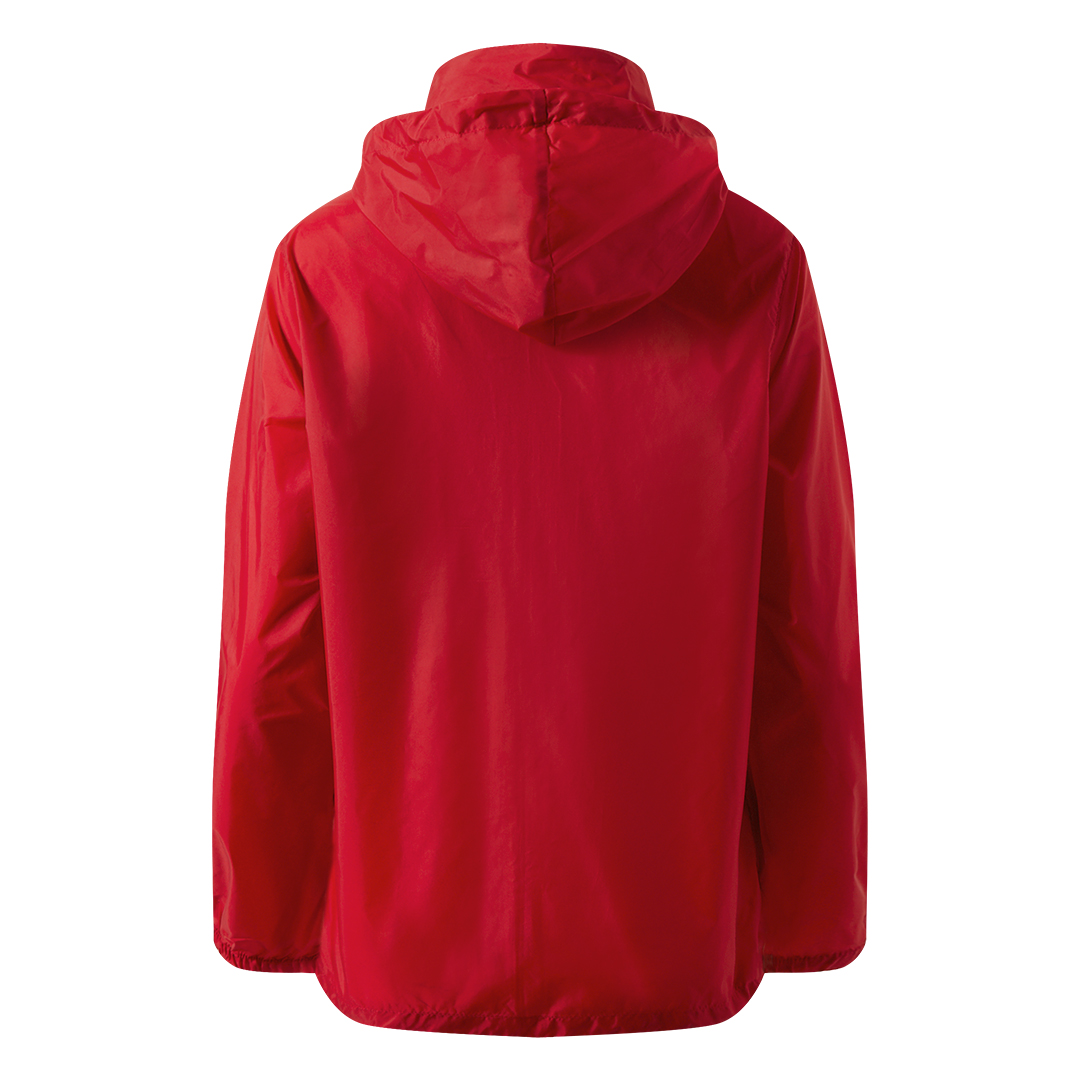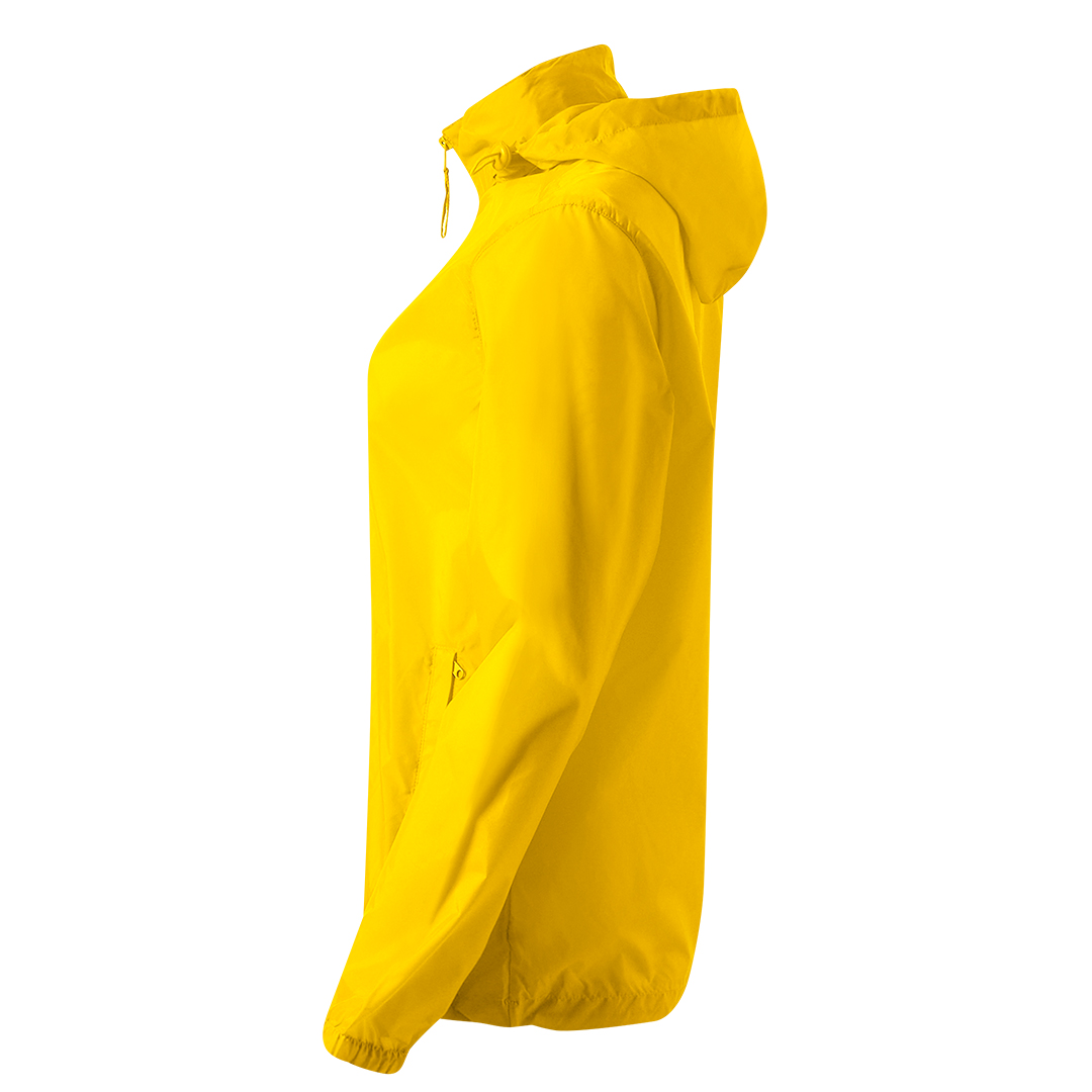 Vetrovka, visoka kragna, kapuljača sa elastičnim učkurom i steznim regulatorima savijena u kragni, koja je zatvorena čičak trakom, elastične ranfle na rukavima, dva prednja džepa sa rajsferšlusom, učkuri sa steznim regulatorima u dnu, integrisana džep torbica smeštena u desnom džepu