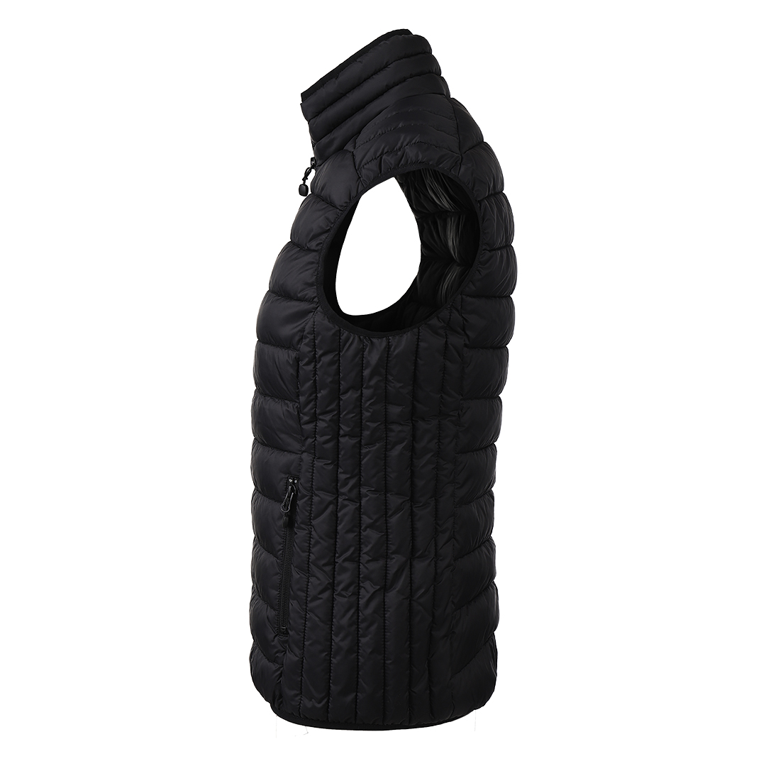 Ženski prsluk sa laganim punjenjem, blago strukiran, štepani, dva prednja džepa, elastični paspuli oko ramena i džepova, vrećica za pakovanje