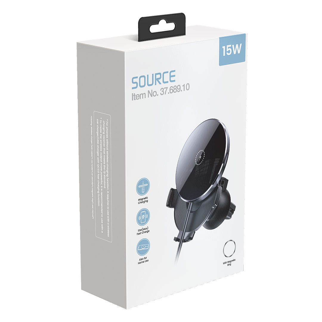 Držač i bežični punjač mobilnih telefona sa magnetom, 15W