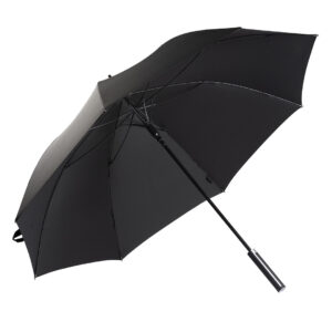 Kišobran sa 8 panela, mehanizam za otvaranje je kombinacija metala i fiberglass-a, crni metalni stub (Ø 11 mm), plastični krajevi, drvena drška, navlaka sa postavom u boji kišobrana, otporan na vetar