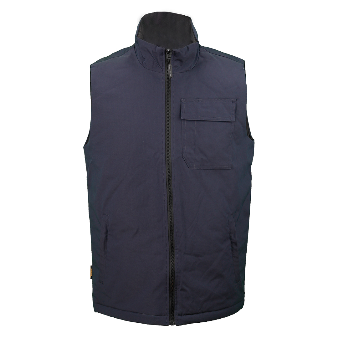 Radni prsluk sa visokom kragnom, od izdržljivog ripstop materijala, džep sa preklopom na grudima, dva prednja džepa i unutrašnji džep