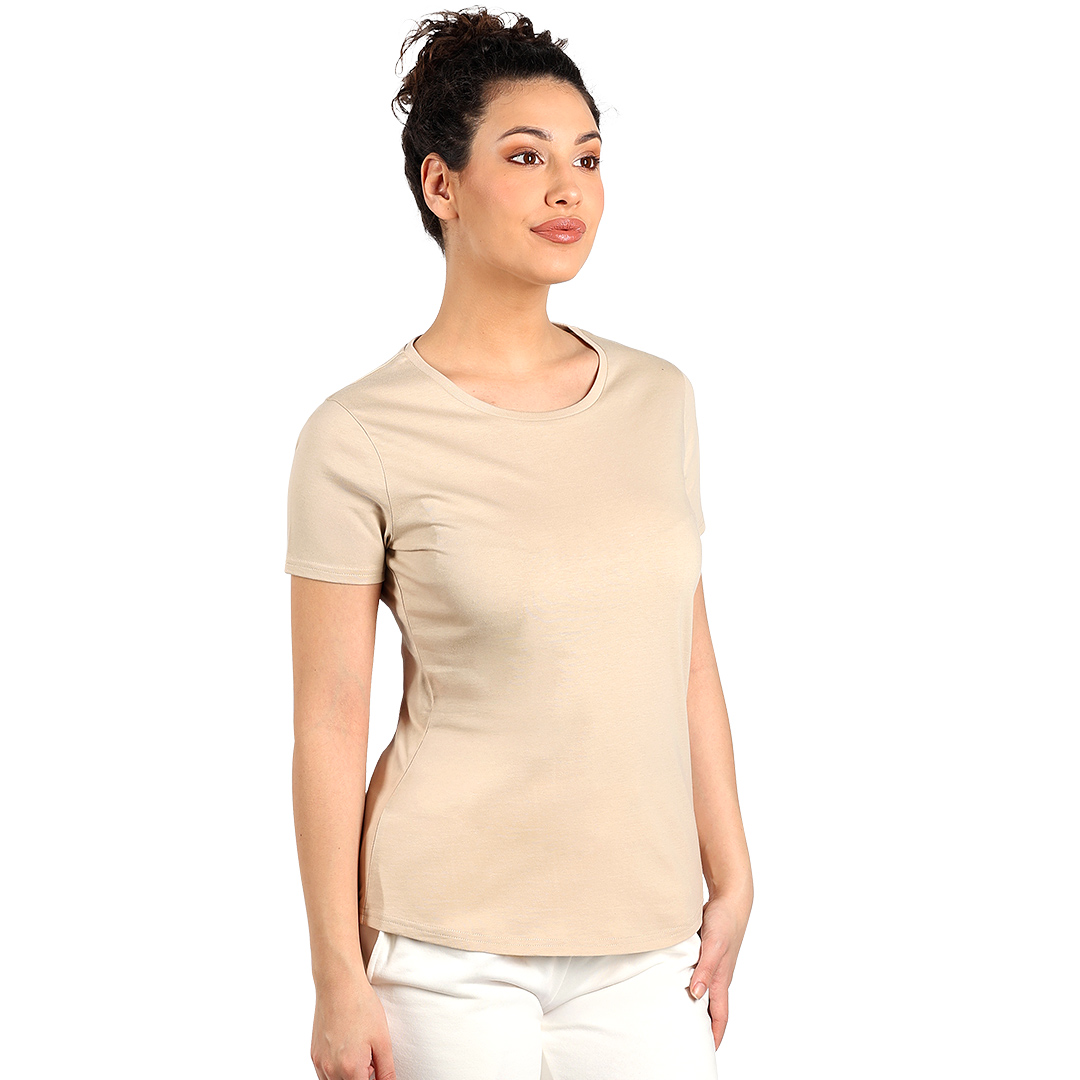 Majica šivena sa strane, sa duplim štepovima na renderu, rukavima i dnu, dodatni štep duž ramena, okovratnik ojačan trakom
